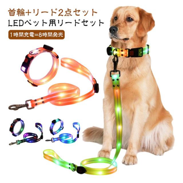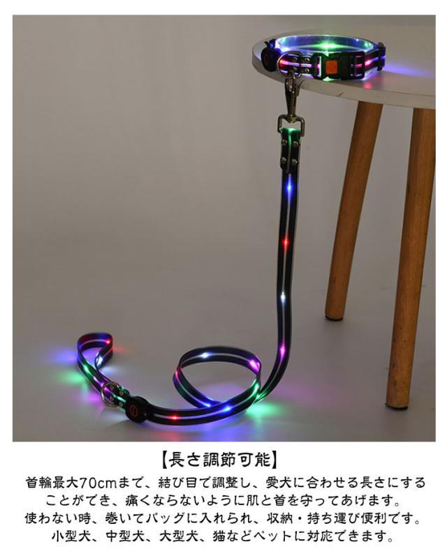 犬 LED光るリード 光る 夜間散歩 光るリード ペット用 USB充電式 光る首輪 リード サイズ調整可能 夜散歩ライト リード長さ120cm 犬 柔らかい 無臭 リードセット 軽量 安全対策 視認性 子犬 小型犬 中型犬 大型犬