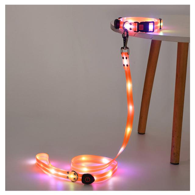 光る 犬 リードセット 首輪 USB充電式 光るリード 柔らかい 光る首輪 LED光るリード リード サイズ調整可能 夜間散歩 リード長さ120cm 犬 無臭 夜散歩ライト 軽量 安全対策 視認性 子犬 小型犬 中型犬 大型犬