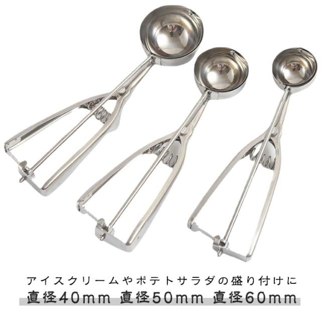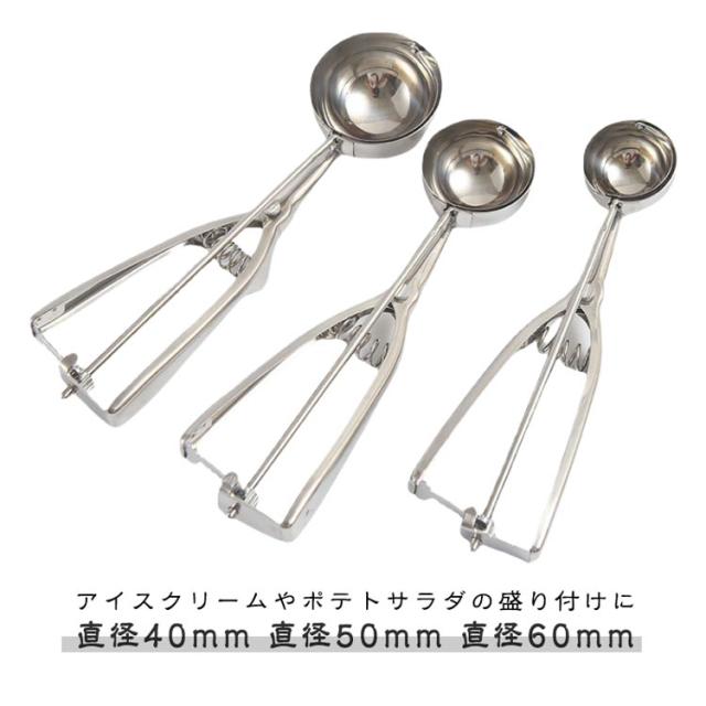 アイスクリームディッシャー アイスクリームスプーン アイススクープ アイスクリームディッシャー 小さい キッチン用品 飲食店 料理用 業務用 直径40mm 直径50mm 直径60mm アイスクリーム ポテトサラダ 肉団子 ステンレス素材
