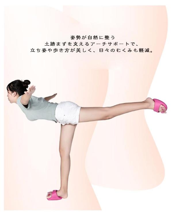 | 履くだけ美と健康 ダイエットスリッパ <お勧めポイント> ポイント01 足裏を刺激するツボ設計 ポイント02 足指を広げるぷにゅぷにゅの足指パッドが足の位置をしっかりホールド ポイント03 シンプルデザイン&上品な3色展開 ポイント04 土踏まずを支えるアーチサポート構造 ●履くだけで手軽にケア 履くだけで足元をしっかりケア。 忙しい日常でも、簡単に美脚と健康をサポート。 ●姿勢が自然に整う 土踏まずを支えるアーチサポートで、 立ち姿や歩き方が美しく、日々のむくみも軽減。 ●毎日履きたくなる洗練したデザイン シンプルで上品なデザインは、ルームウェアにもぴったり。 どんなシーンでも活躍。 ●清潔&繰り返し使える 丸ごと水洗いOKで長く愛用。 | |