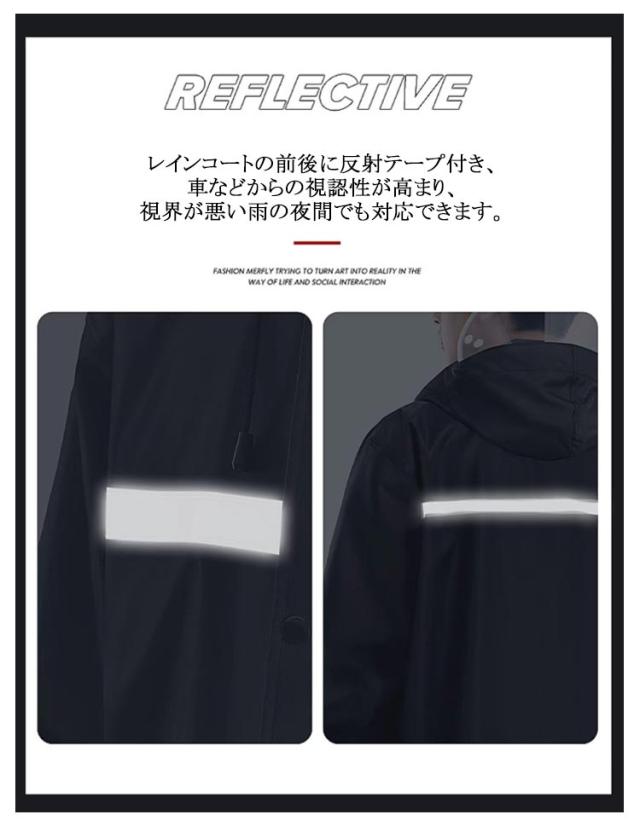 自転車 レインコート レインコート 裏地メッシュ 袖付き 通勤 レディース カッパ バイク ロング丈 ポンチョ メンズ 撥水 防水 防風 耐久 レインウェア 反射テープ 雨具 梅雨対策 男女兼用 男性用 通学 ダブルポケット付き 大きいサイズ ブラック