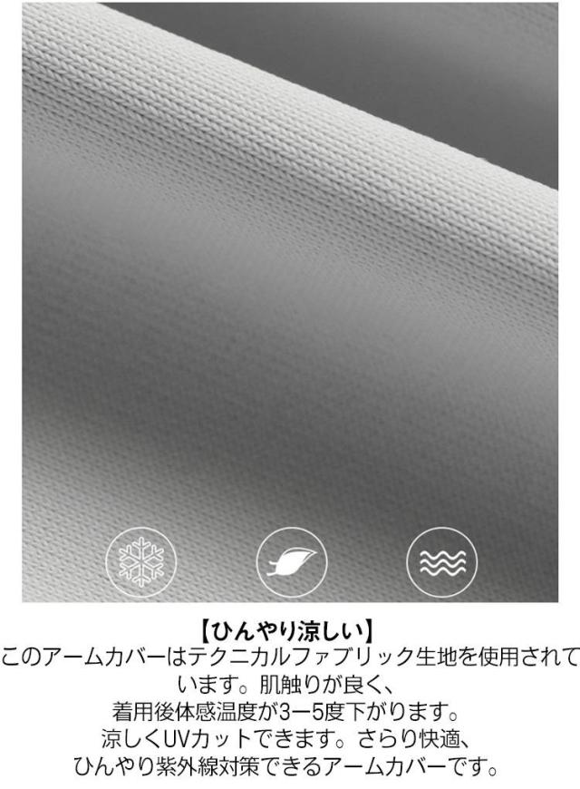 | 【手袋一体型】アームカバー+手袋のデザインで、腕から指先までしっかりUV対策できます。指先をスッと出せますので、スマホタッチの邪魔にならない。アームカバーの腕部分に手を出せる開け口もありまして、手を出したい時は簡単に手袋のみ脱げられます。 【滑り止め】 手のひら部分には滑り止めがついているので、サイクリング、運転などの時もしっかりハンドルを握ることができます。安全で安心して使用できます。肌触りが良い上で、しっかり物を持てます。 【ひんやり涼しい】 このアームカバーはテクニカルファブリック生地を使用されています。肌触りが良く、着用後体感温度が3−5度下がります。涼しくUVカットできます。さらり快適、ひんやり紫外線対策できるアームカバーです。 【UPF50+】 紫外線保護指数が50+となり、99%の紫外線をカットしています。この夏の紫外線対策に最適なアームカバー。 【弾力性・柔軟性・通気性】 このアームカバーが採用されている生地はシルクのような触り心地で、弾力性と柔軟性も優れます。通気性もよく、熱い夏で着るのは負担にはなりません。涼しい紫外線対策が可能です。 | |
