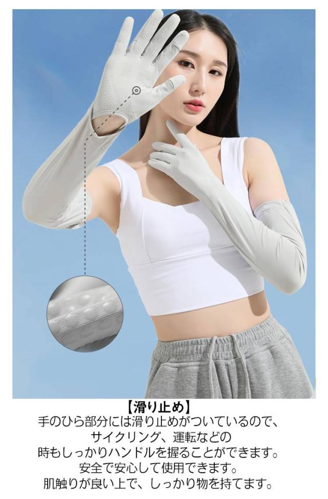 UVカット ロング アームカバー アームカバー 冷感 日焼け防止 アームカバー レディース UPF50+ 腕カバー 紫外線対策 スマホ対応 指あり 日焼け対策 手袋 吸汗速乾 暑さ対策 UVケア UV手袋 滑り止め 涼しい クール 自転車 運転