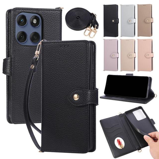Edge 60 Pro ケース ショルダー 60s Pro 手帳型 カバー スマホショルダー PUレザー ストラップ付き 肩掛けストラップ付き ミラー付き 手帳型PUレザーケース スタンド機能 カード収納 ストラップ穴 Motorola モトローラ エッジ 60 プロ / エッジ 60s プロ