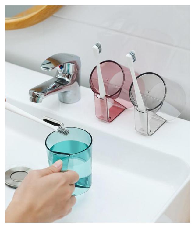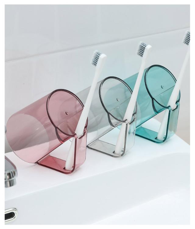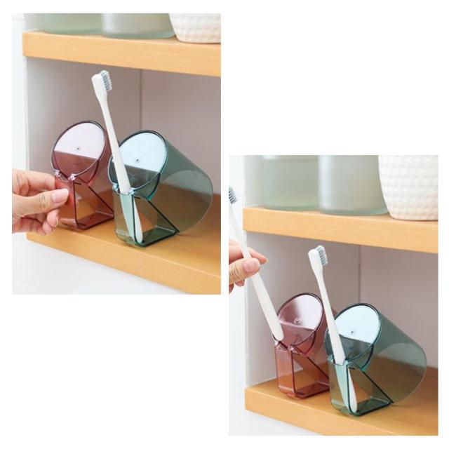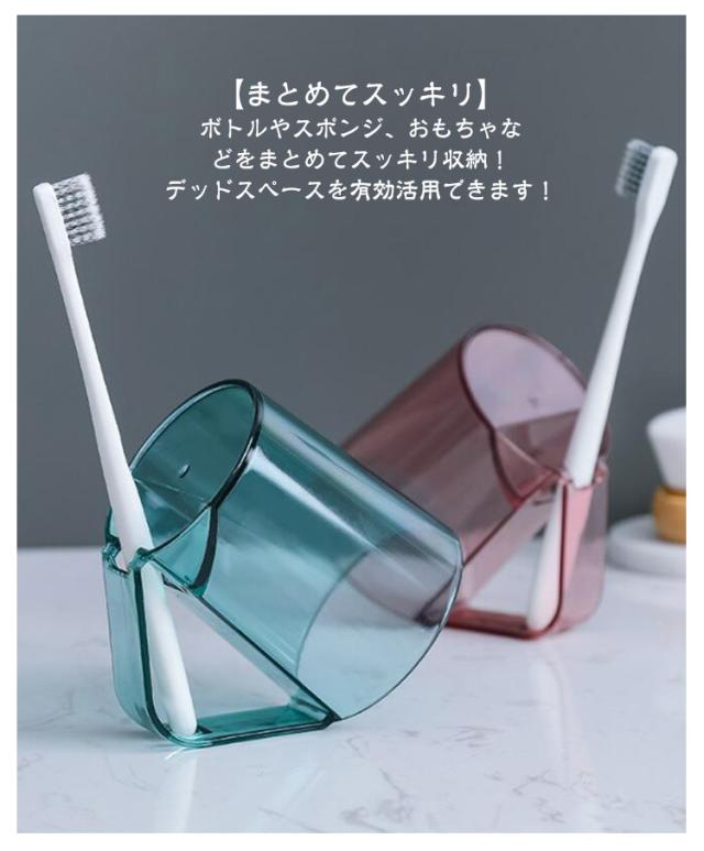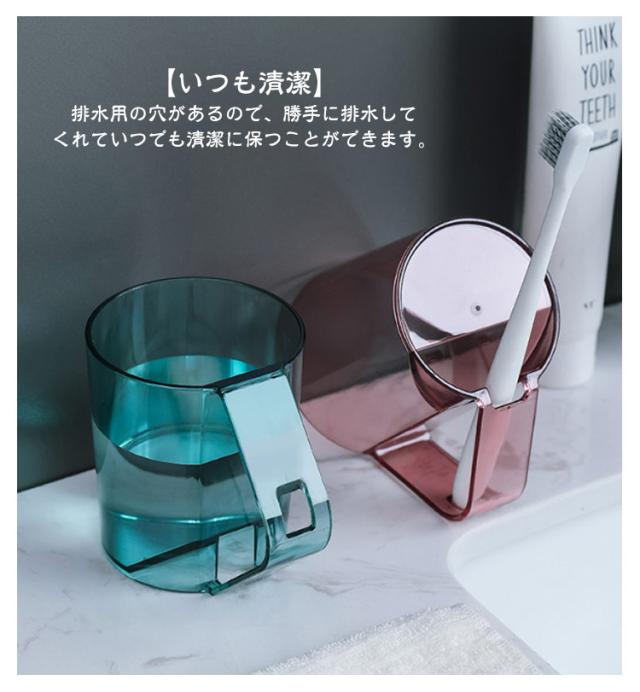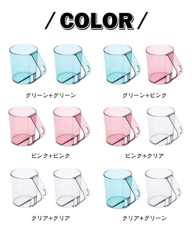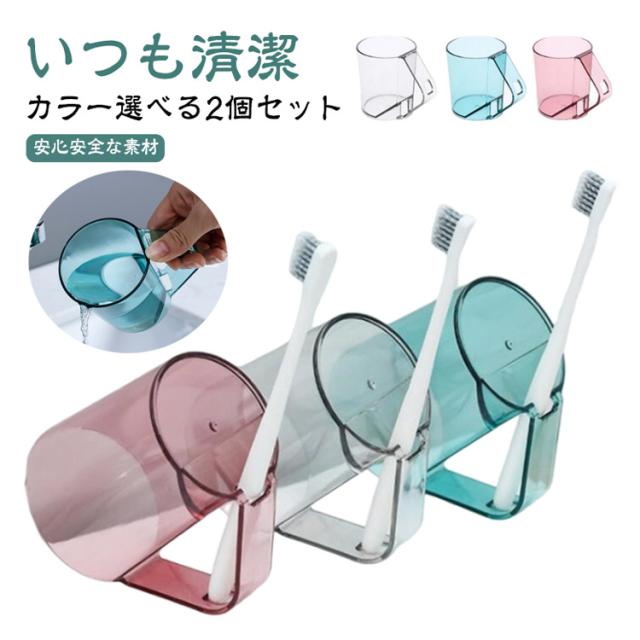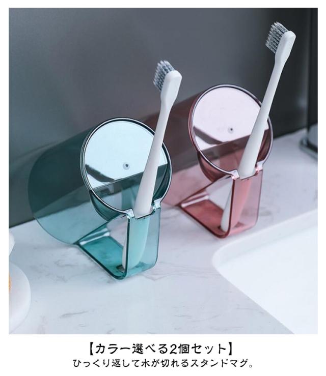 うがい 歯磨きコップ 歯磨き 【カラー選べる2個セット】 うがいコップ 水が切れる クリア 透明 抗菌 持ち手 タンブラー 自立 スタンドマグ 歯ブラシ スタンド ホルダー コップ カップ 【カラー選べる2個セット】