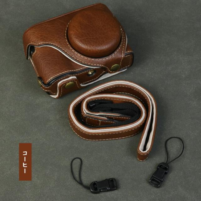 LUMIX DC-TZ99 ケース ZS99 カメラケース PUレザーハーフケース ショルダーストラップ 肩掛け ショルダーベルト付き ストラップ 肩掛けベルト付き ハーフカバー 保護ケース シンプル 傷つき防止 Panasonic パナソニック ルミックス DC-TZ99 ZS99 カバー カメラ保護 衝撃吸収