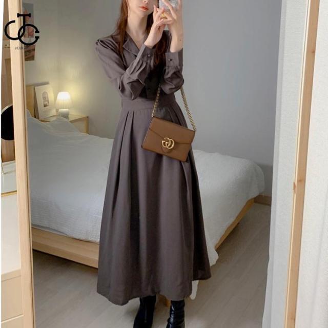 ワンピース レディース 40代 50代 きれいめ 春夏 春 夏 秋 フォーマル 春コーデ 春物 春服 秋物 秋服 服装 無地 襟付き 長袖 ロング丈 膝下丈 ミモレ丈 マキシ丈 Aライン フレア 韓国ファッション 大きいサイズ ウエストマーク お呼ばれ 二次会 オケージョン 結婚式 パーティードレス 入学式 通勤 オフィス カジュアル 婦人服 ミセス 20代 30代 60代 茶 ブラウン カーキ ベージュ