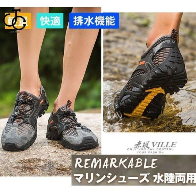 マリンシューズ 水陸両用 メンズ岩場 大人 アクアシューズ フィットネスシューズ 靴 保護 軽量 快適 メッシュ 排水機能 ダイビング シュノーケリング