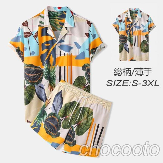 【アロハ・セットアップ】上下セット アロハシャツ メンズ レディース 花柄 半袖 カジュアルウェア 部屋着 シャツ ショートパンツ おしゃれ