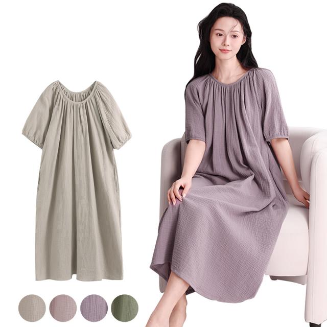 ・ダブルガーゼ素材の綿100%ゆったり着れるルームワンピース