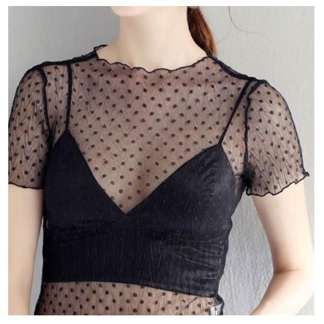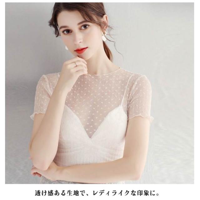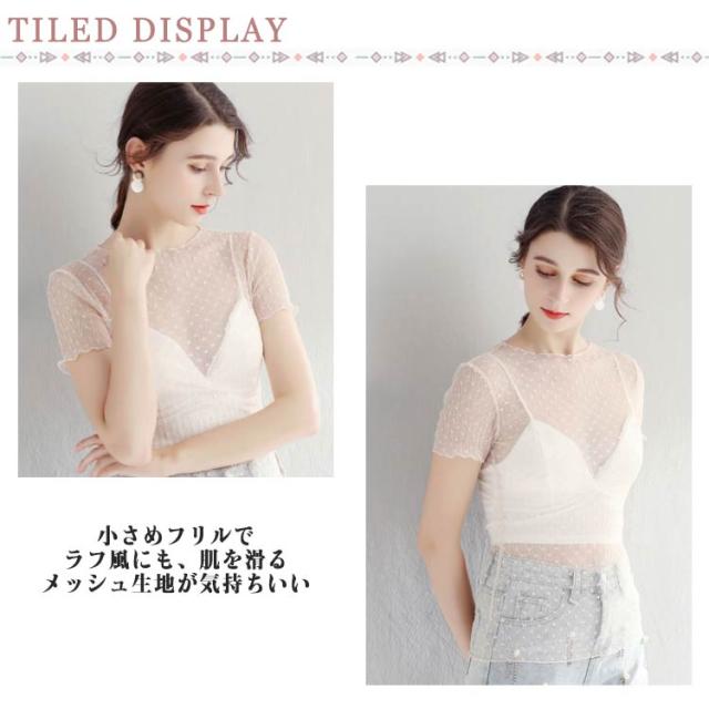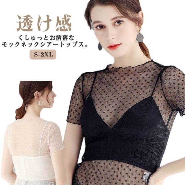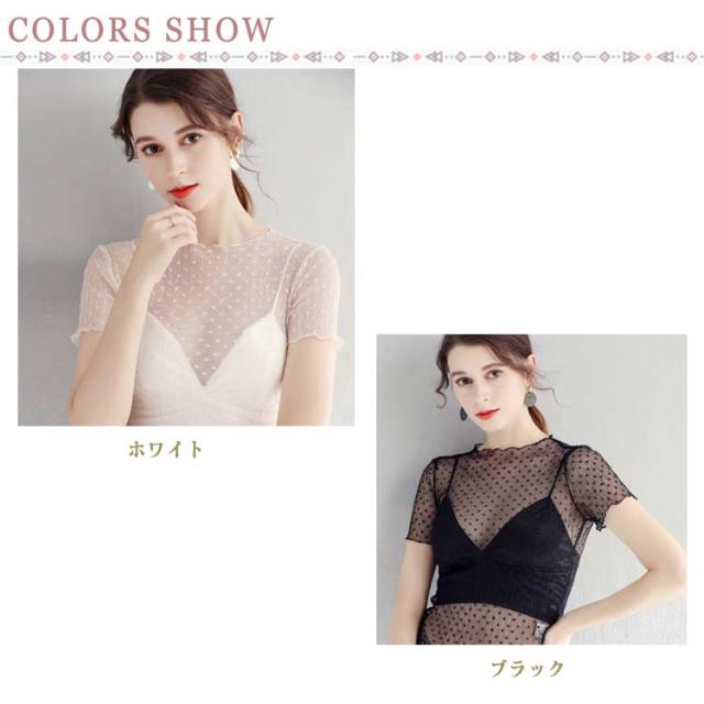 透け感 トップス 半袖 シアー 薄手 インナー ドット柄 プチハイネック シアートップス フリル UV対策 レイヤード レディース プルオーバー きれいめ シアートップス レース ショート丈 モックネック 薄手 重ね着 シアートップス 紫外線対策 シースルー トップス