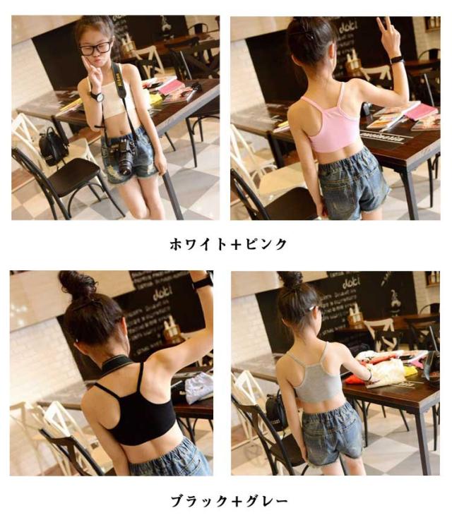 2枚セット アンダーウェア 中学生 ブラトップ キッズ ハーフトップ 子供服 小学生 インナー 大きいサイズ ダンス衣装 ショート 下着 ヒップホップ 女の子 かわいい 肌着 キャミソール インナー チューブトップ 無地 女児 2枚組 トップス