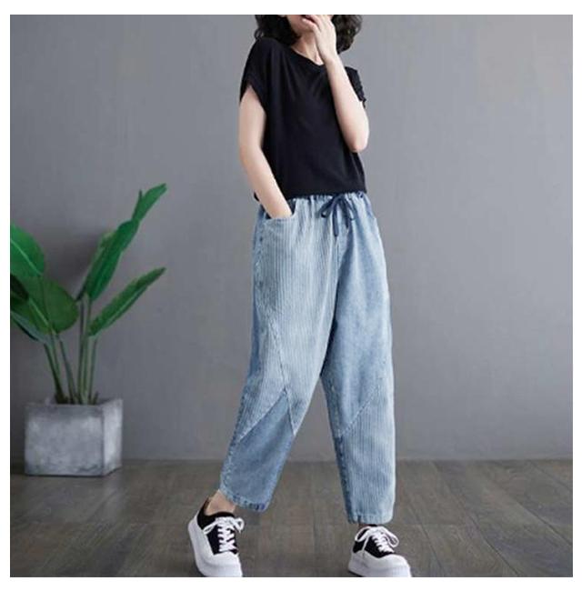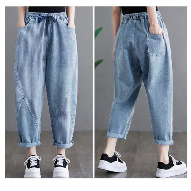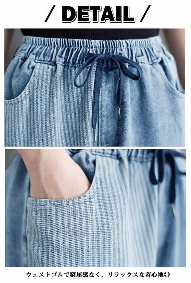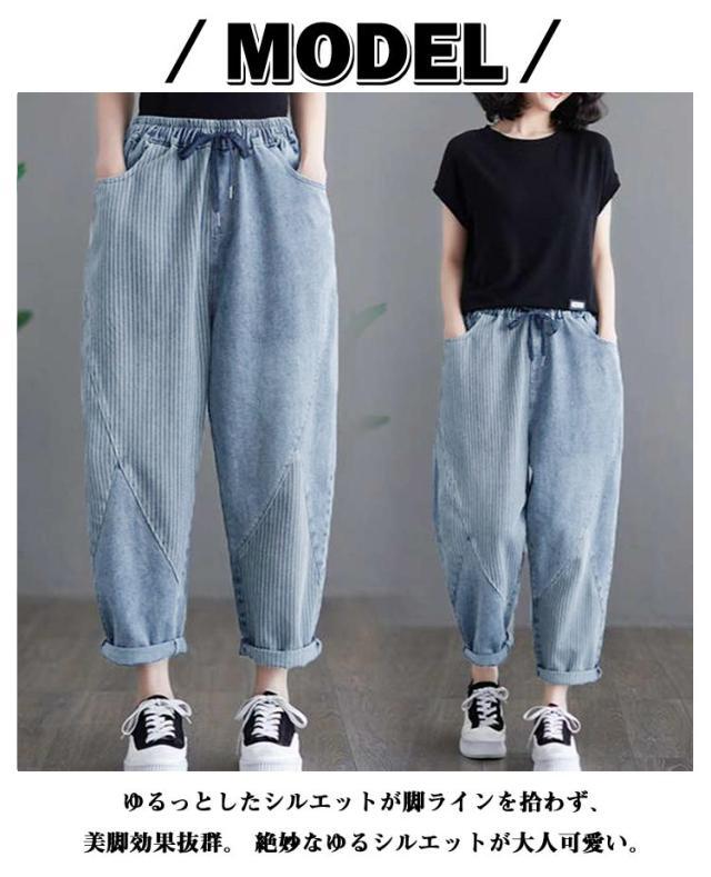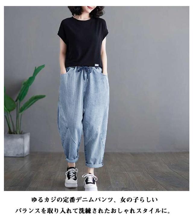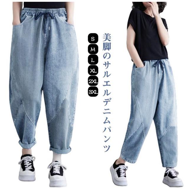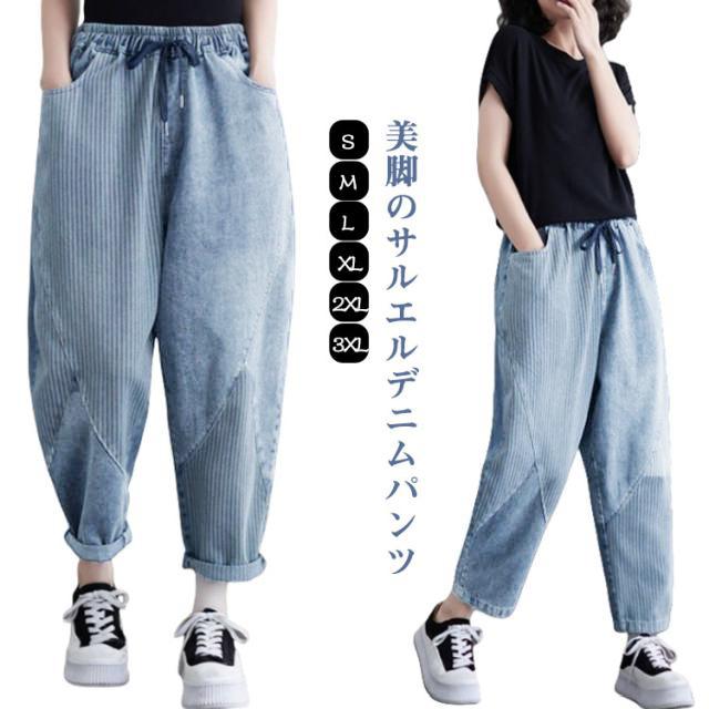 サルエルパンツ ゆったり ウェストゴム サルエルパンツ デニムパンツ 秋 美脚 サルエル 春夏 レディース テーパードパンツ 大きいサイズ ウォッシュ加工 ジーンズ 体型カバー ボトムス 大人 女性 ウエストゴム 快適 ポリエステル