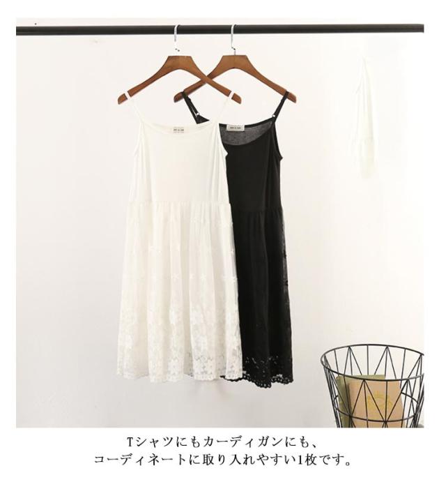 | フラワーレースが裾から覗いてフェミニンな印象◎ 清潔感のあるキャミソールワンピは、女性らしいエレガントな雰囲気を醸し出し、清楚なきちんとコーディネートにも最適。Tシャツにもカーディガンにも、コーディネートに取り入れやすい1枚です。 普段使い、カジュアル、オフィス、ビジネス、デート、おでかけなどの、ワンピ—スやチュニックのキャミソール、インナー、スリップとしても。部屋着などに、妊婦の方にもリラックスキャミとしても幅広くお使い頂けます。 | |
