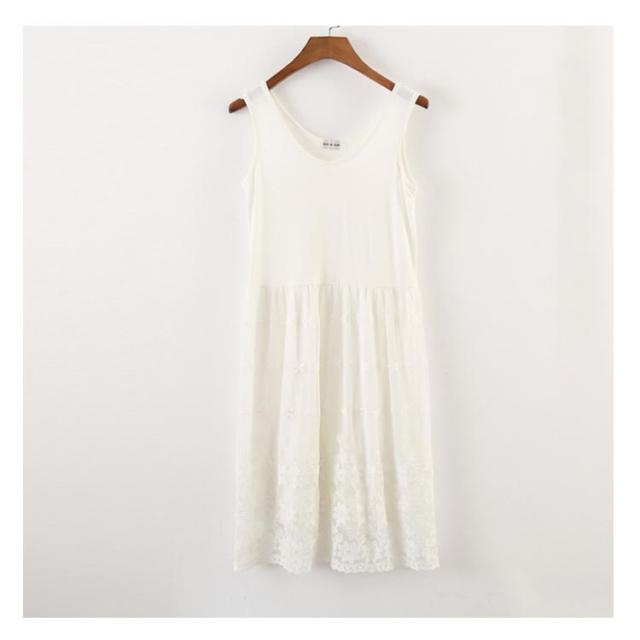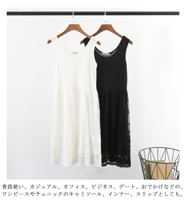 レイヤード 袖無し ワンピース ラウンドネック インナーワンピース ノースリーブ レースワンピース レース キャミソール 春 ペチコート タンクトップ タンクワンピース レディース タンクワンピ ゆったり レースペチコート インナー 柔らか チュールワンピ 可愛い