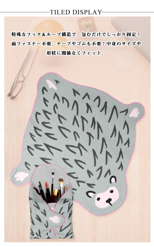 | 包むだけでポーチになる♪ 可愛い動物モチーフくっつきクロス。 特殊なフック&ループ構造で、包むだけでしっかり固定!面ファスナー不要、テープやゴムも不要!中身のサイズや形状に関係なくフィット。 大切なものをしっかり保護!衝撃吸収!クッション性のある素材でキズや衝撃から守る。デバイスを傷つけにくいソフトな手触り。一眼レフカメラやレンズ、化粧品などの保護や収納にオススメ。 濡れた折りたたみ傘や水滴が気になるペットボトルなどを簡単に包むだけで、水滴がしっかり吸収され、車やバッグの中が綺麗に。 | |