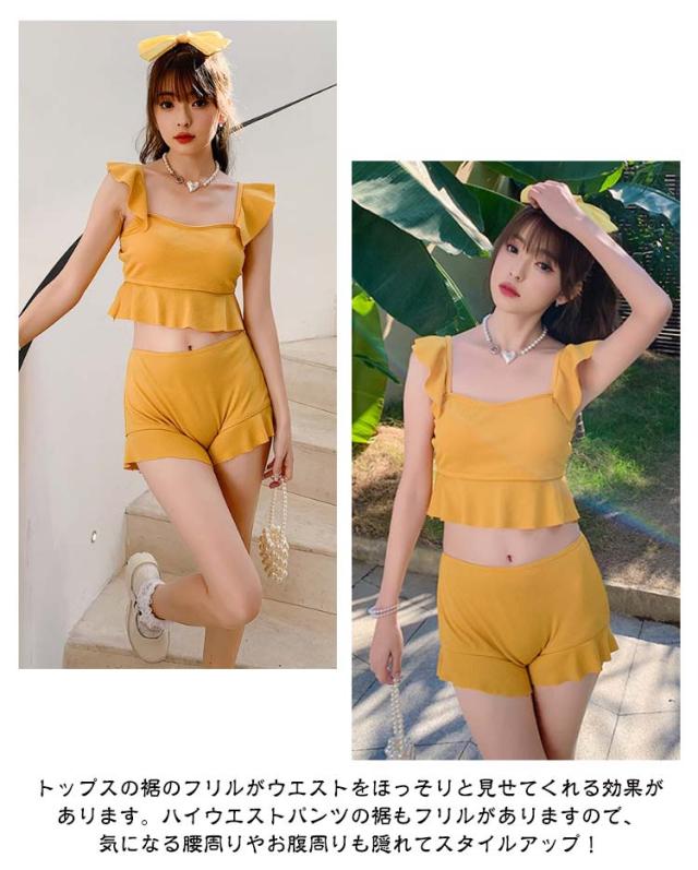 体型カバー ハーフパンツ ビスチェ風 可愛い セパレート ビキニ レディース フリル 露出控えめ タンキニ 水着 タンキニ 10代20代 30代 40代 ママ水着 ビスチェビキニ 上下セット パッド付き