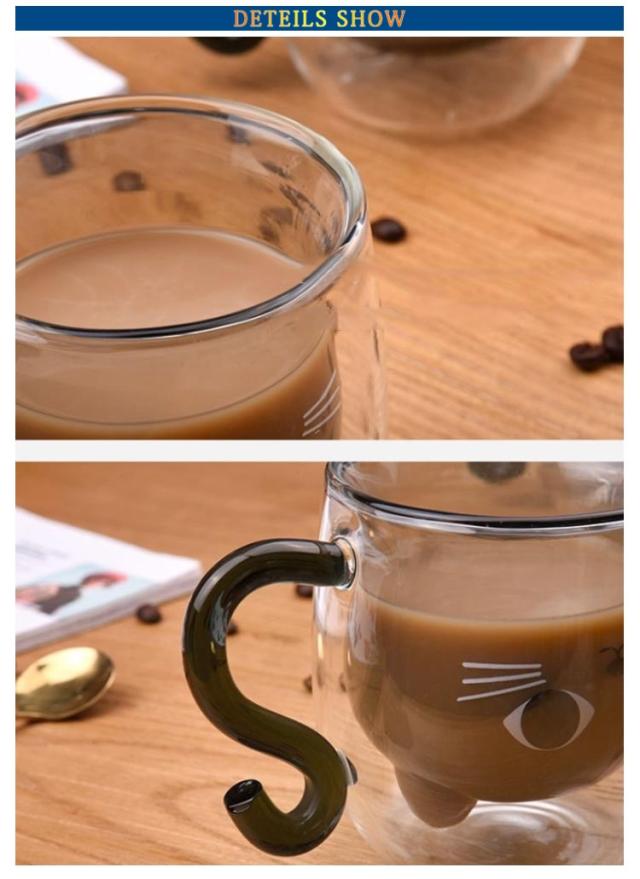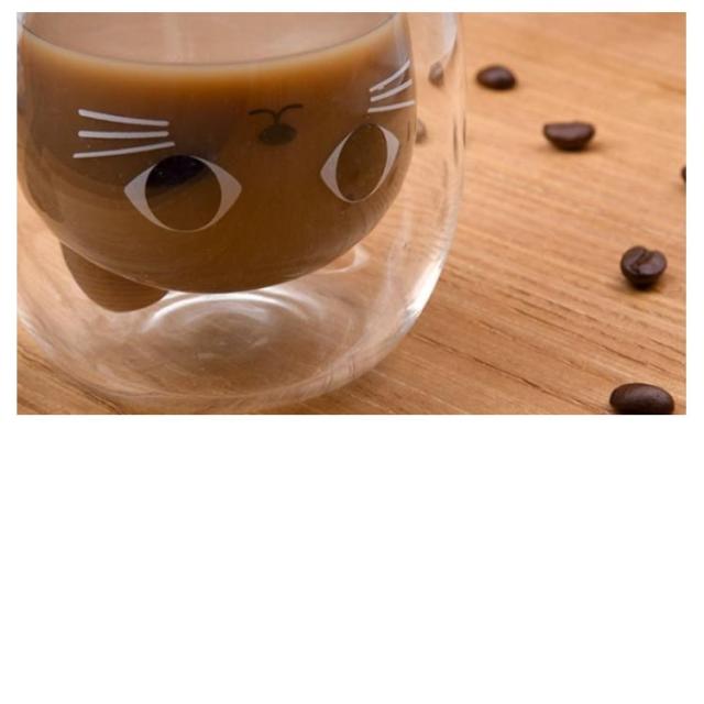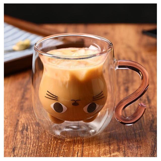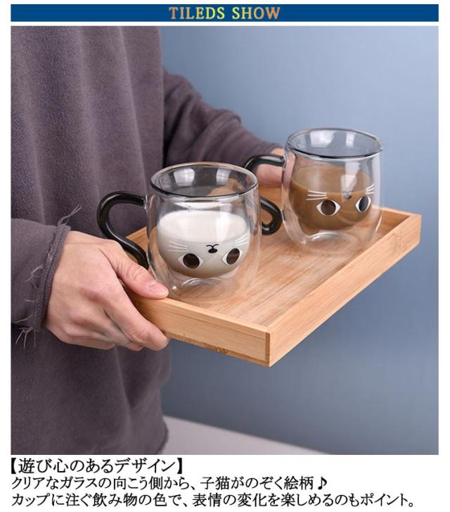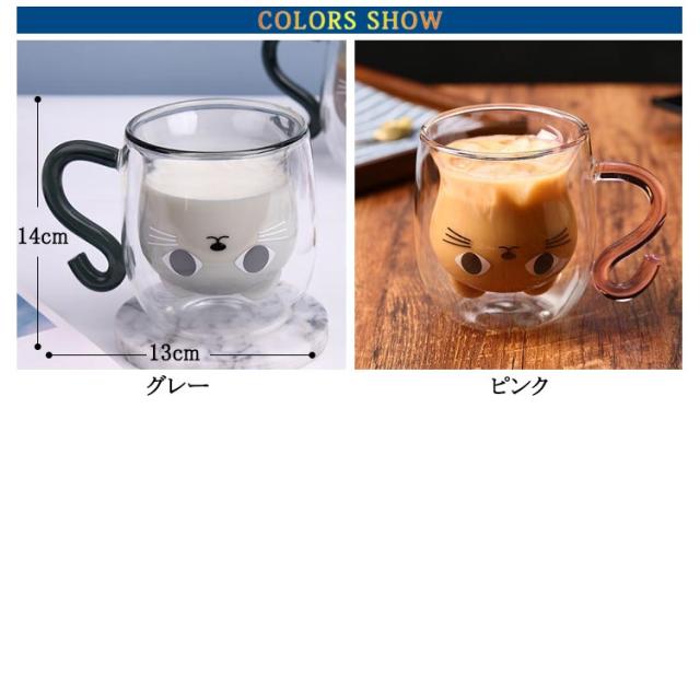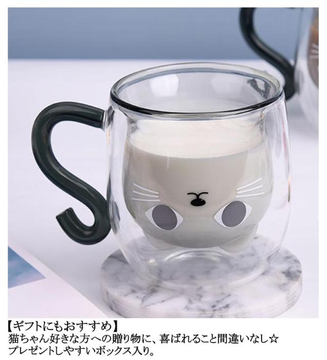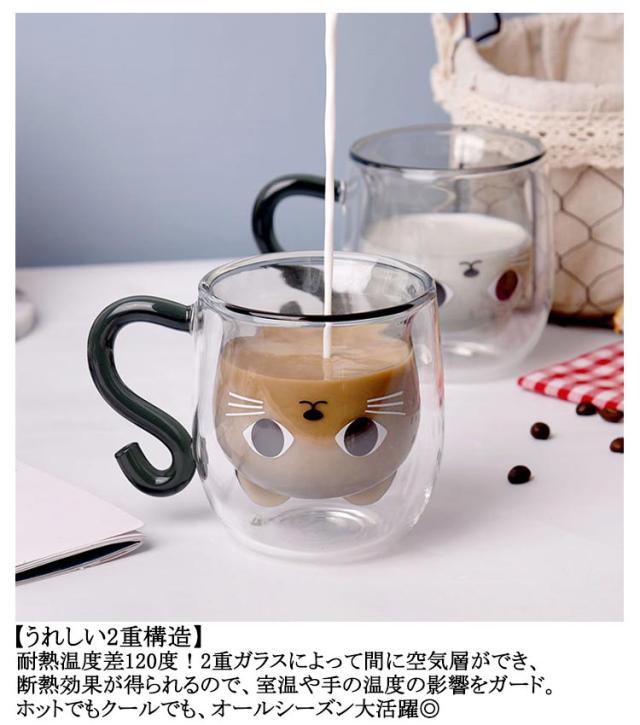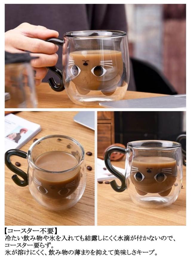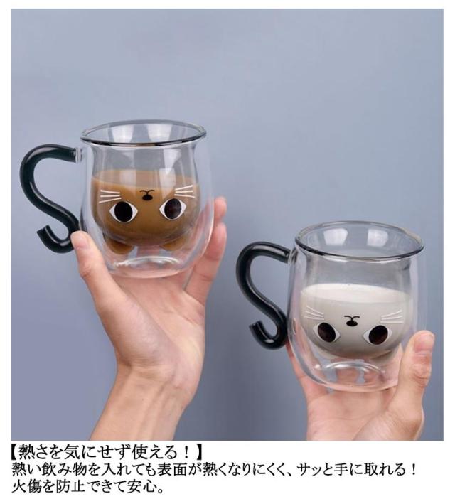 マグカップ コーヒーカップ 250ML マグ カップ 2重構造 cat コップ ホット 2重 耐熱 ダブルウォール スープカップ 耐熱ガラス アイス マグカップ ネコ ねこ 食器 2重ガラス 結露しにくい 猫柄 猫雑貨 猫グッズ おしゃれ おうちカフェ カフェ
