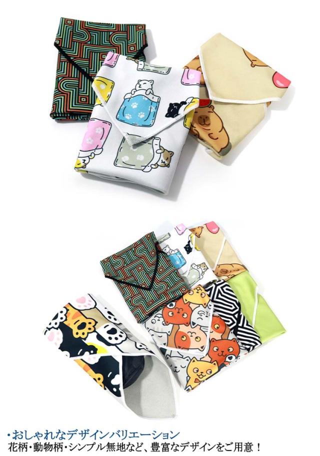 ピタッとくっつくタオル くっつくタオル 吸水 2枚セット 風呂敷 ピタッとくっつくタオル ポーチ 包む タオル クロス 正方形 化粧ポーチ くっつく タオル ラップクロス ランチバッグ バンダナ 小物入れ マジッククロス