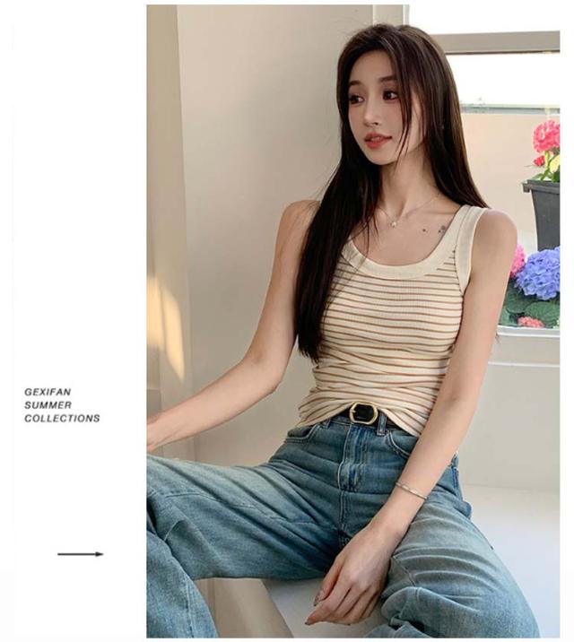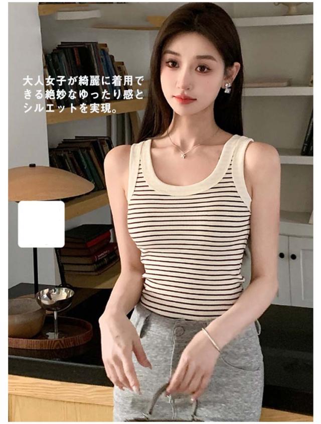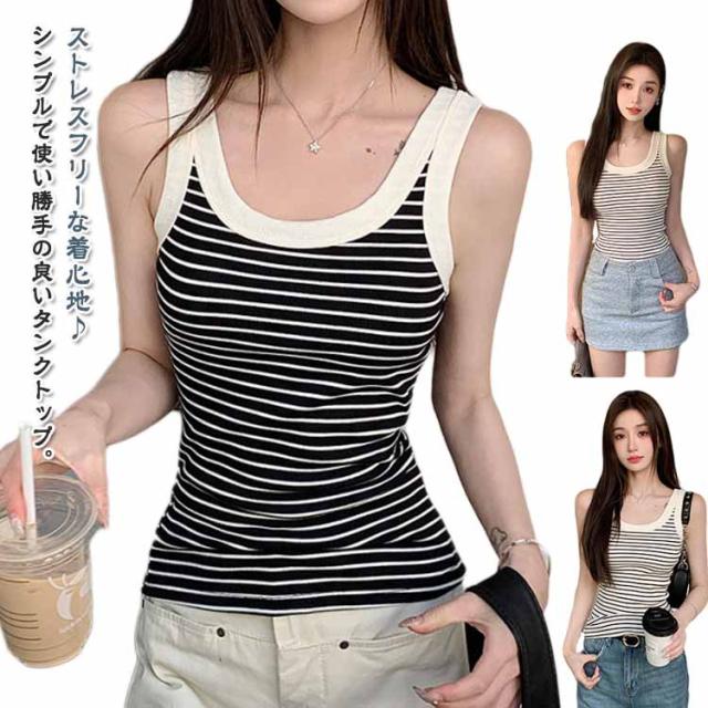 無地 インナー レイヤード 送料無料 レディース タンクトップ ノースリーブ クルーネック ボーダー柄 Tシャツ カットソー 肌着 トップス 大人 カジュアル シンプル 送料無料 薄手