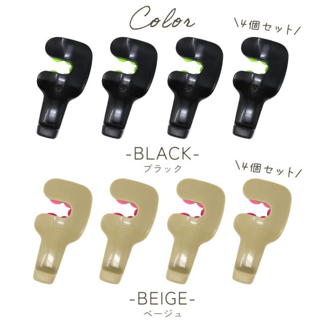 車内のヘッドレストに簡単に取り付けられる、4個セットの車用シートフックです。