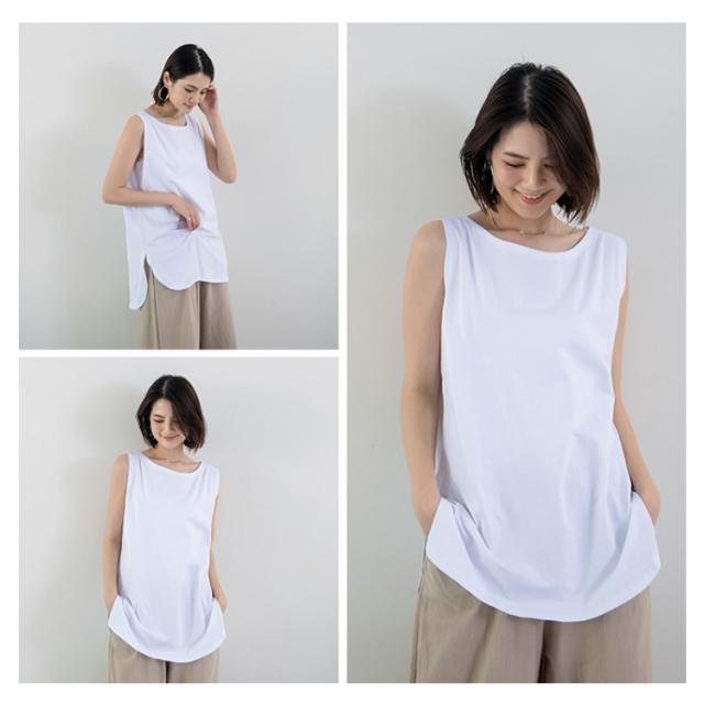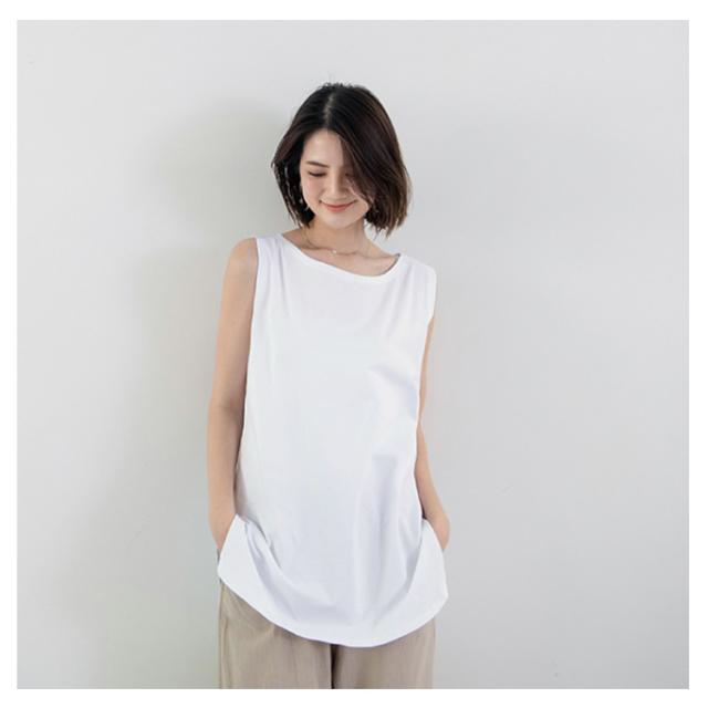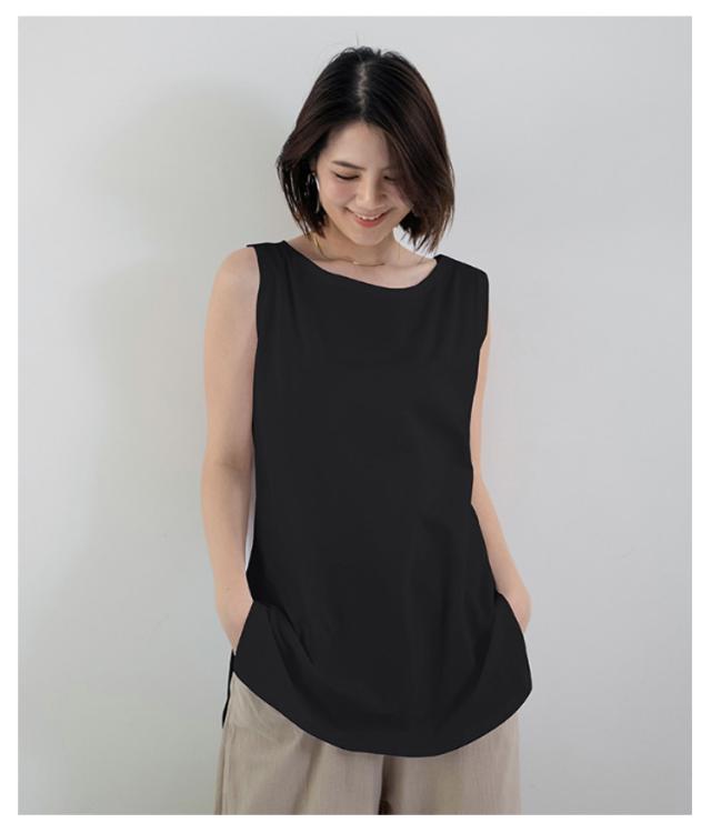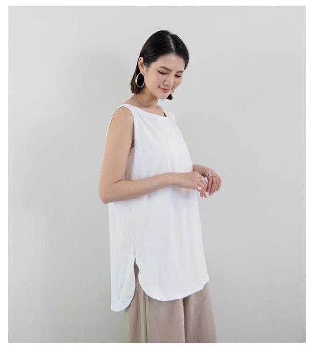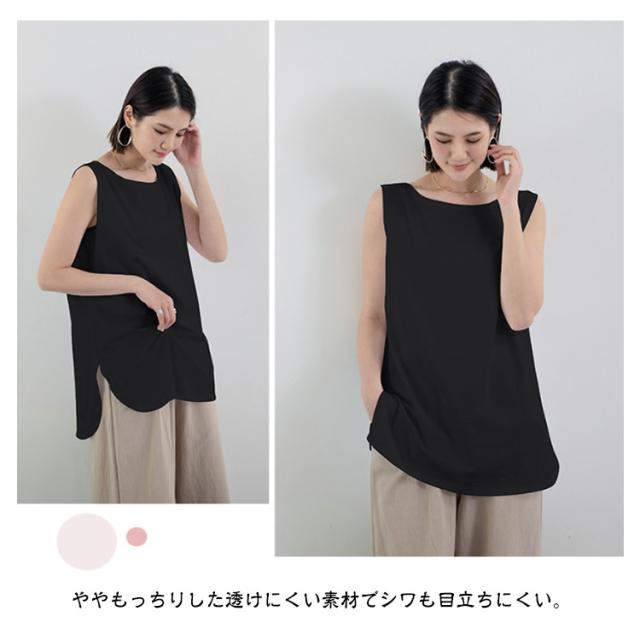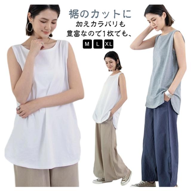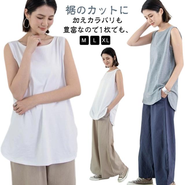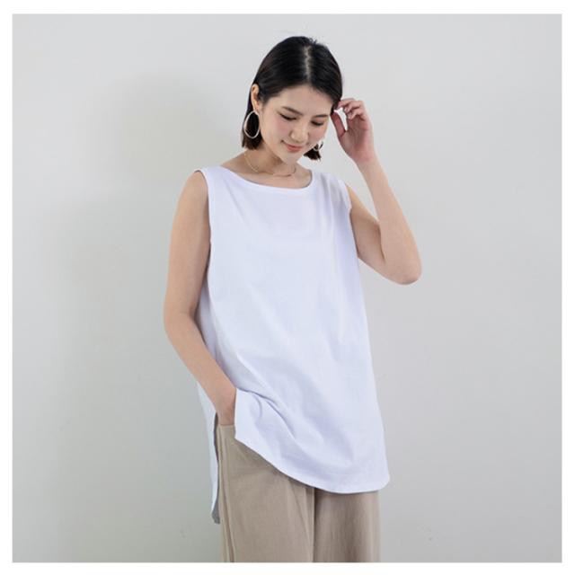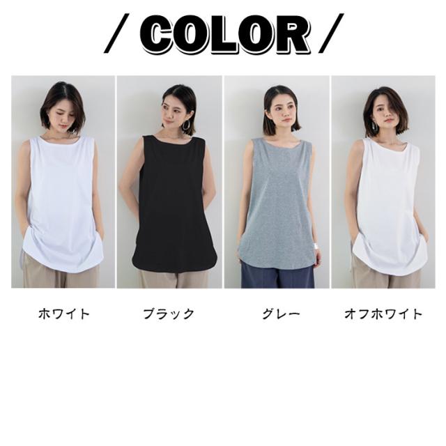 レディース サイドスリット ベスト ノースリーブ カットソー ロングTシャツ 大きいサイズ タンクトップ 夏 タンクトップ Tシャツ 綿 キャミソール 春 袖なし 涼しい 秋 インナー 無地 白 前後差 黒 ゆったり グレー ブラック ホワイト 重ね着 レイヤード Uネック