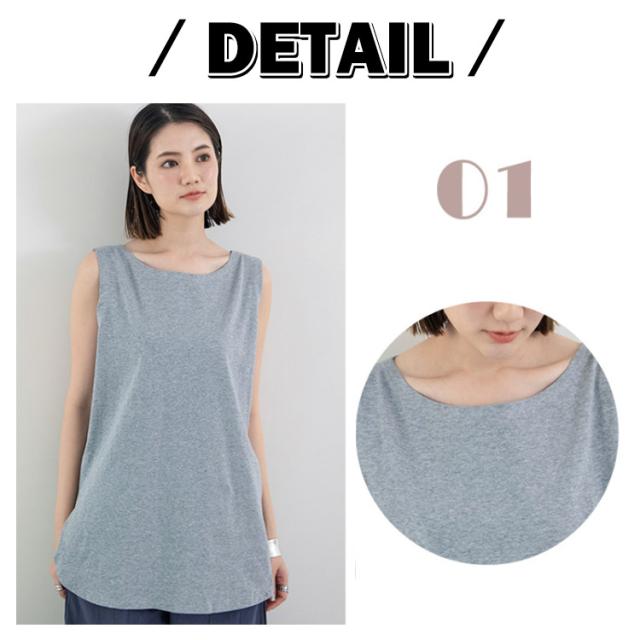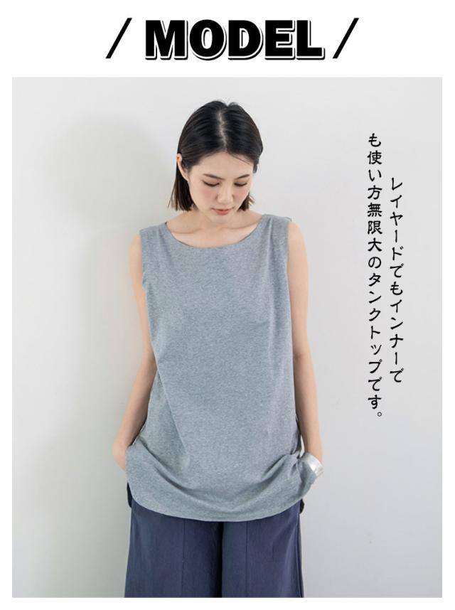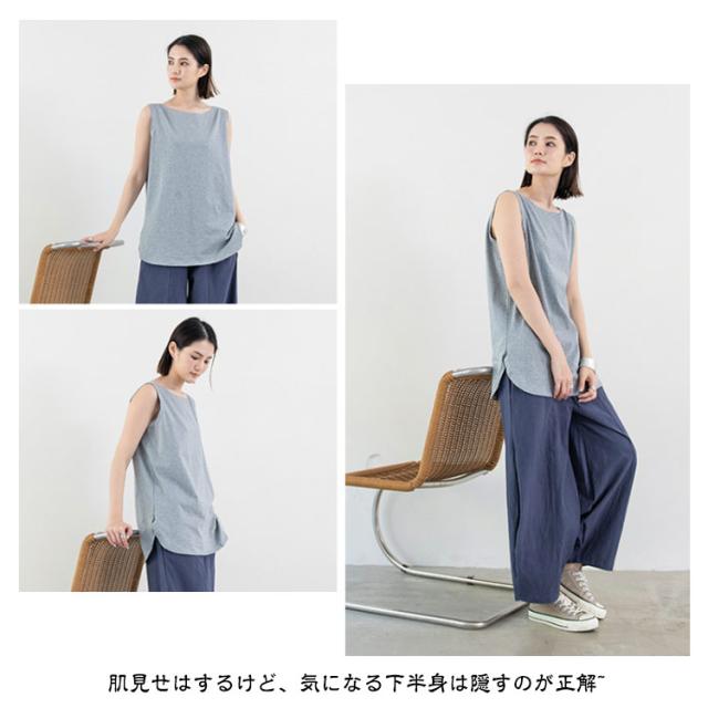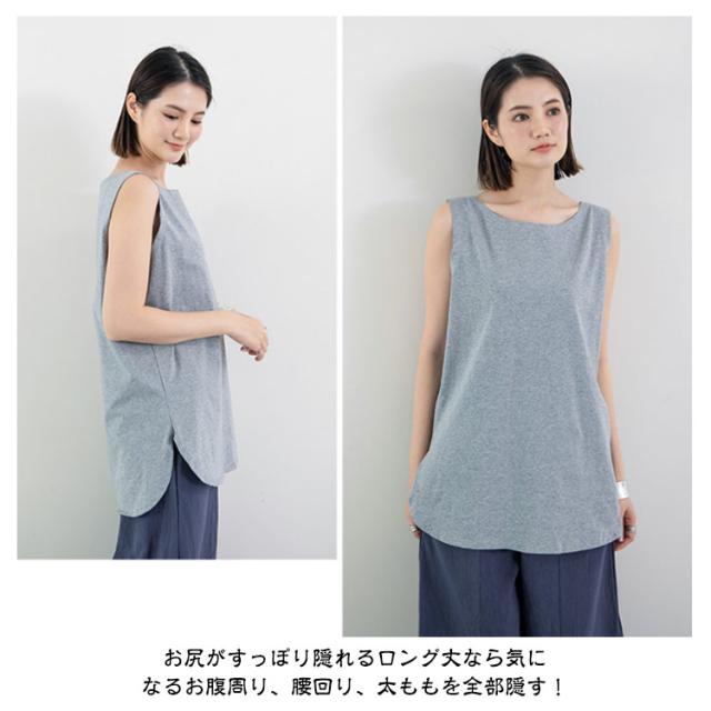 | 裾のカットに加えカラバリも豊富なので1枚でも、 レイヤードでもインナーでも使い方無限大のタンクトップです。 肌見せはするけど、気になる下半身は隠すのが正解~ お尻がすっぽり隠れるロング丈なら気になるお腹周り、腰回り、太ももを全部隠す! ややもっちりした透けにくい素材でシワも目立ちにくい。 程よい伸縮性もあり、着心地よい。 | |