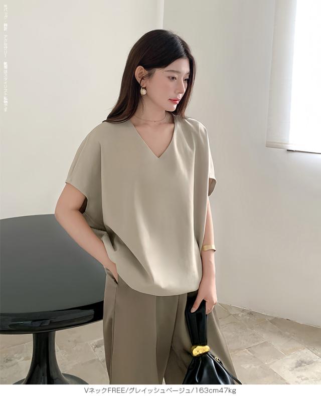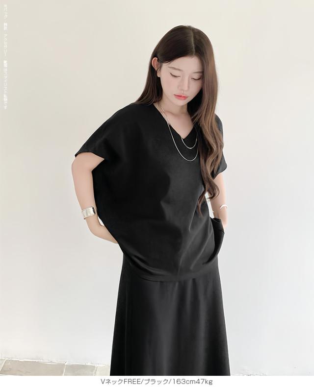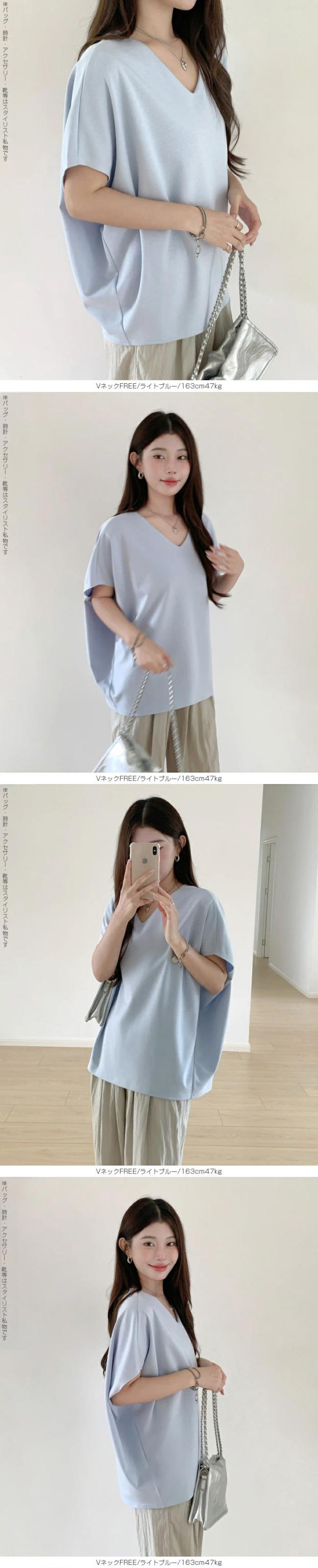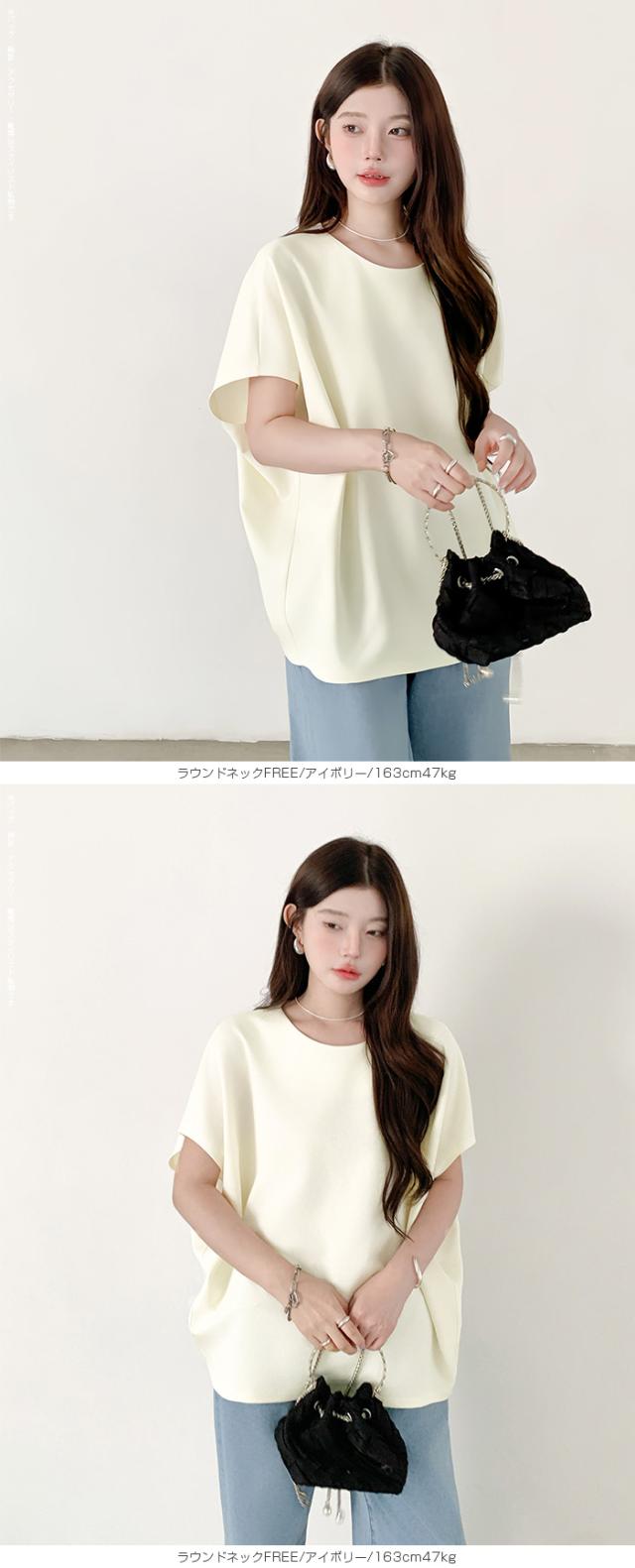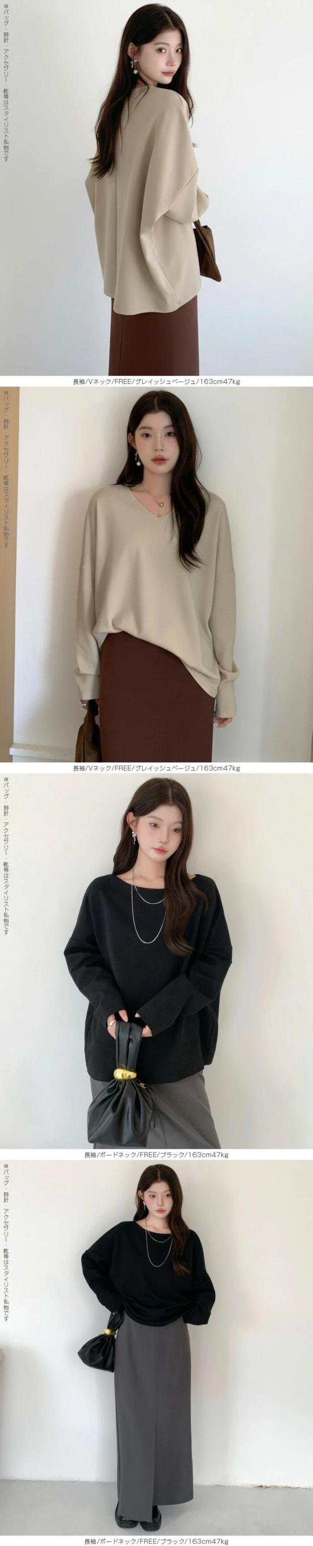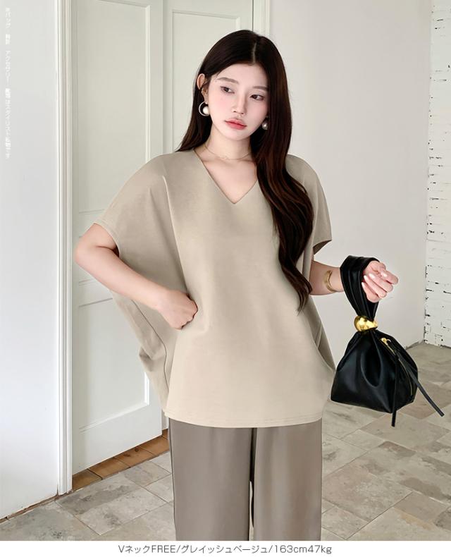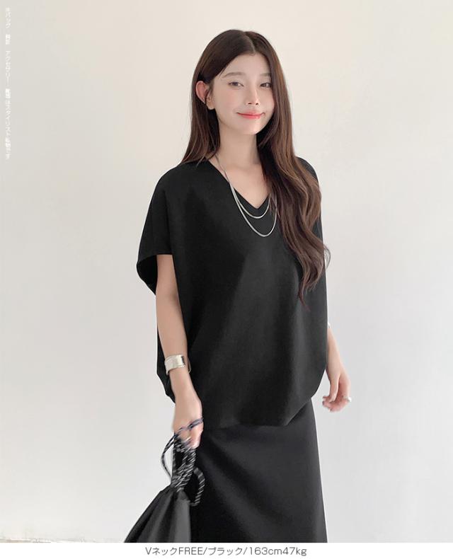 40%OFFクーポン!クーントップス 長袖 半袖 トップス レディース Vネック ラウンドネック 半袖 ストレッチ プルオーバー ゆったり 体型カバー 選べる2タイプ 無地 夏 【コクーントップス】 秋新作 a_bag