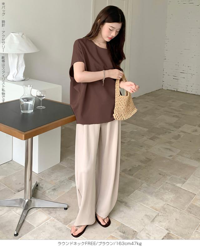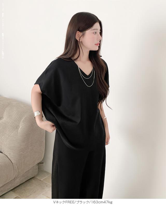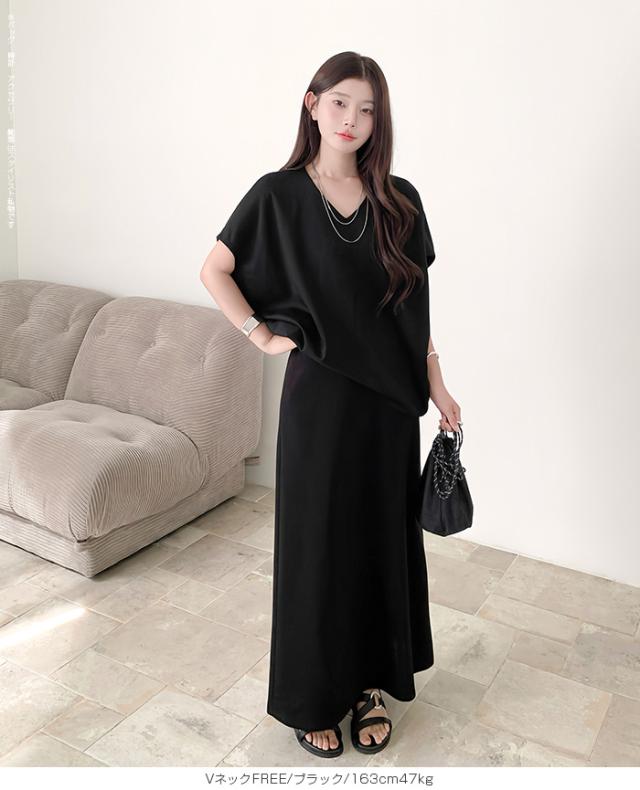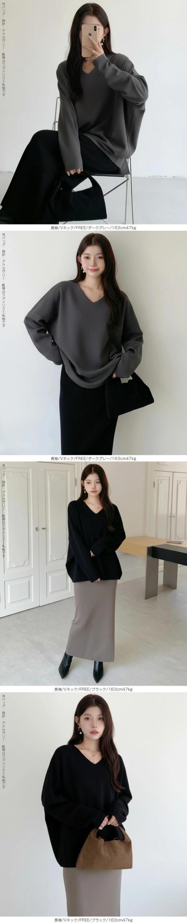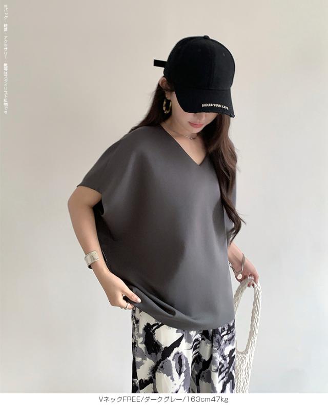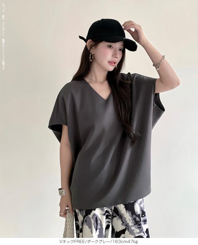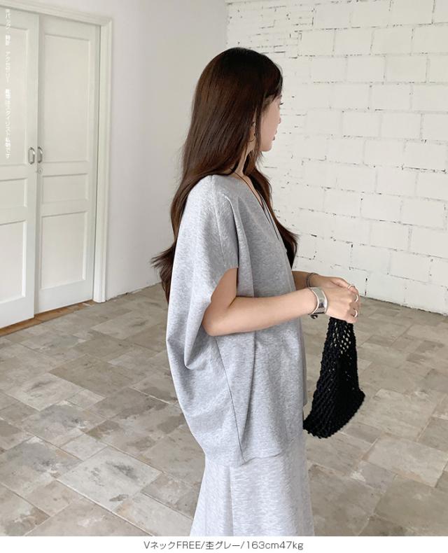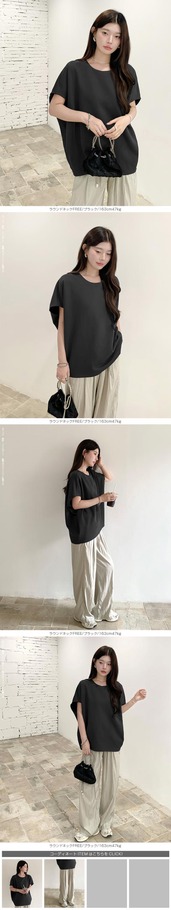 40%OFFクーポン!クーントップス 長袖 半袖 トップス レディース Vネック ラウンドネック 半袖 ストレッチ プルオーバー ゆったり 体型カバー 選べる2タイプ 無地 夏 【コクーントップス】 秋新作 a_bag