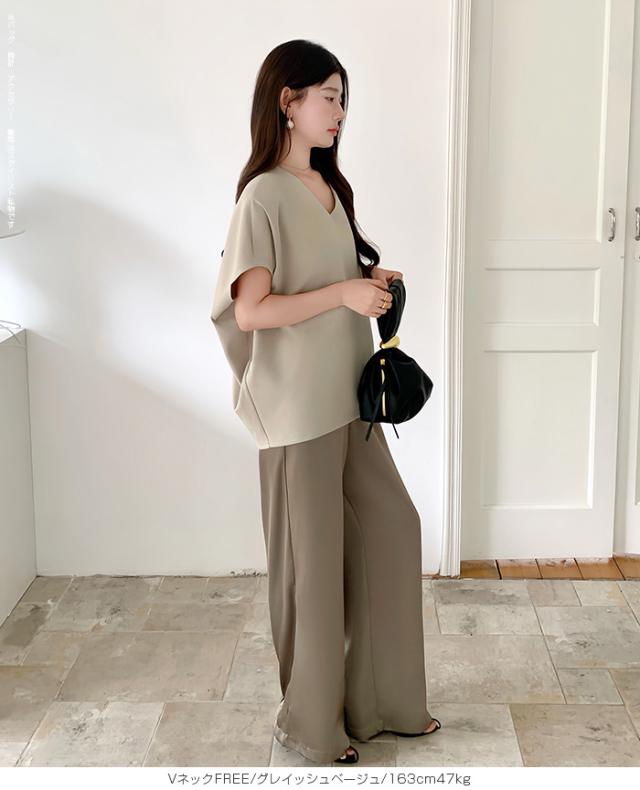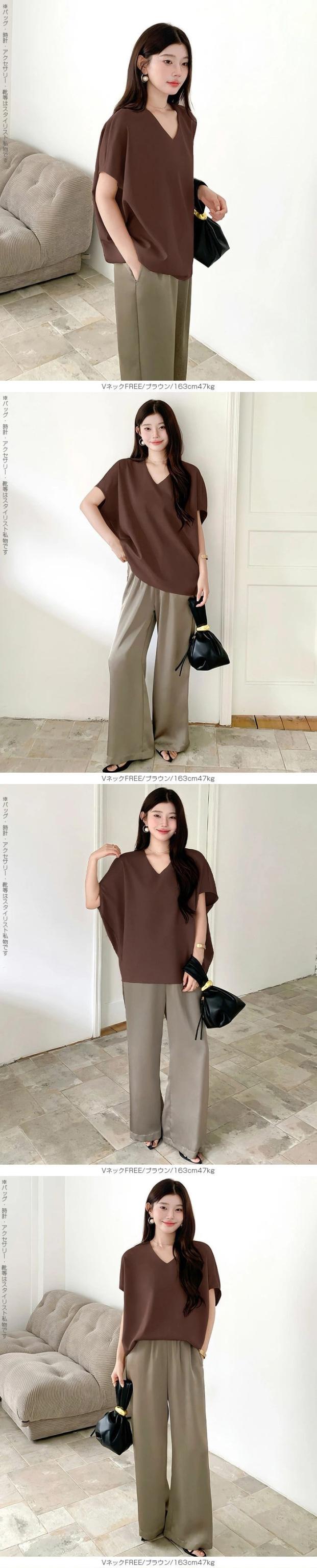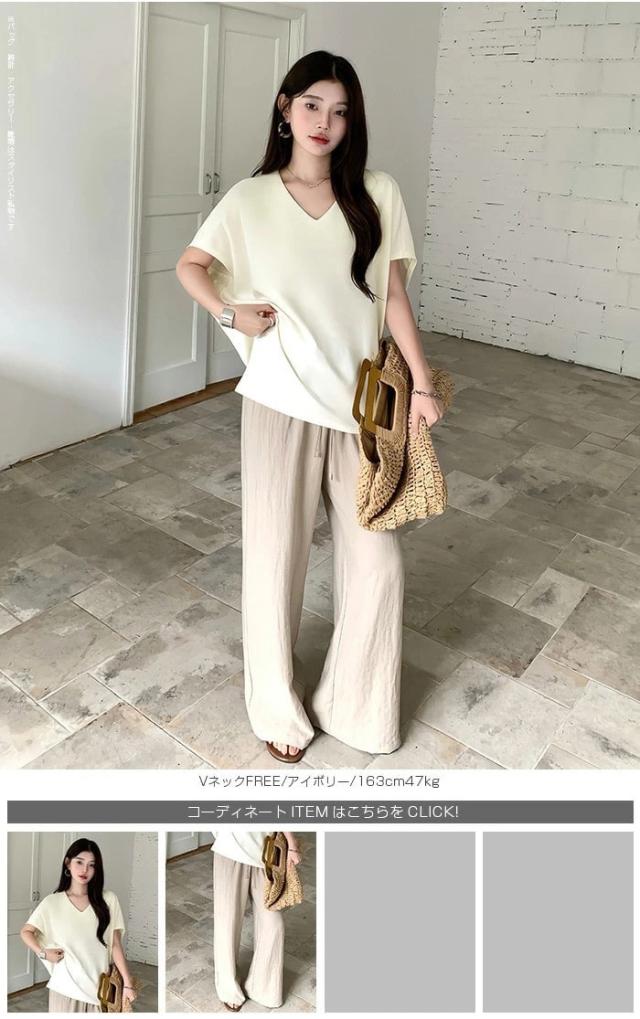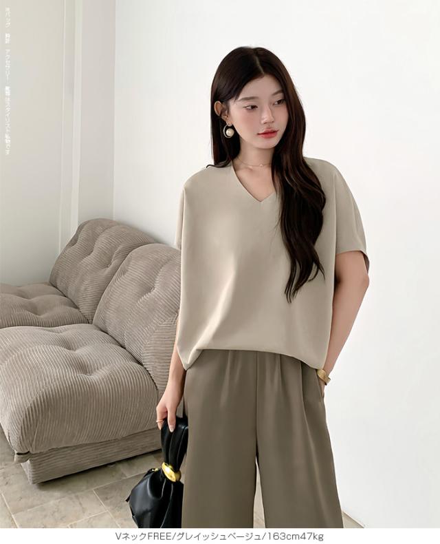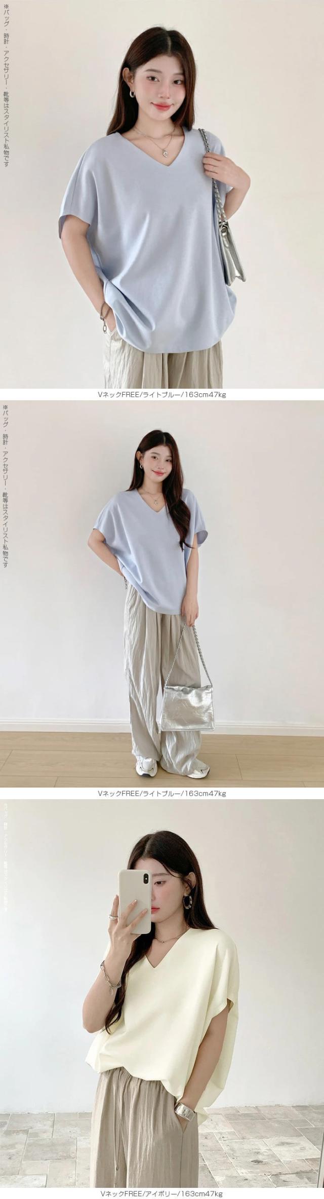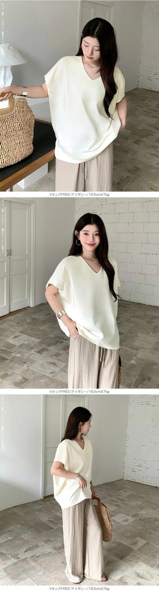 - V字型 購入 生地サラ 肌触りもいい 前だけインしてもダボ付き感があって オシャレに着れる 気に入ってます。