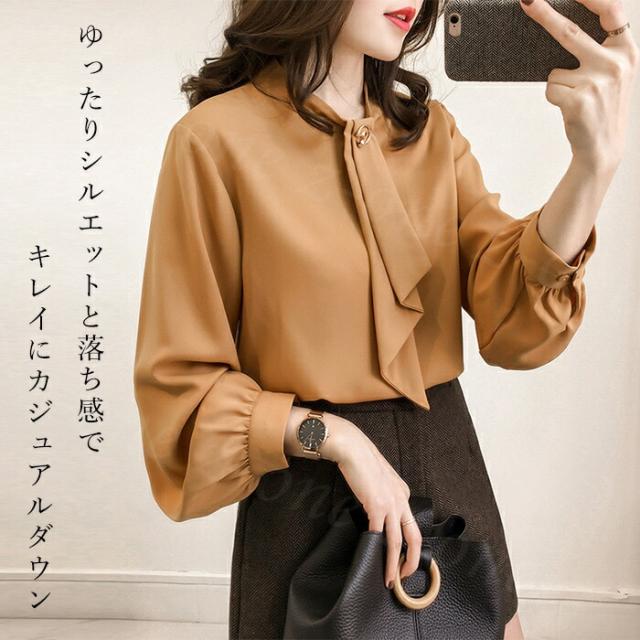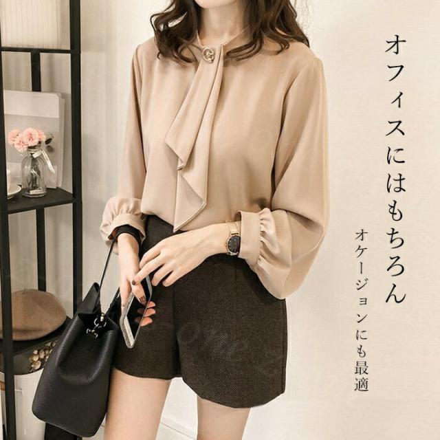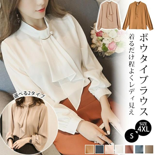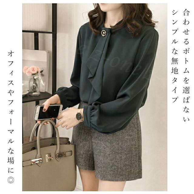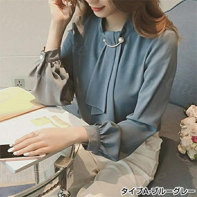 ブラウス シャツ シフォンブラウス長袖 新作 トップス オフィス マッチングしやすい 襟元リボンブラウス リボン付きブラウス 胸元パールボウタイブラウス 無地 きれいめ ゆったり 通勤 O カジュアル