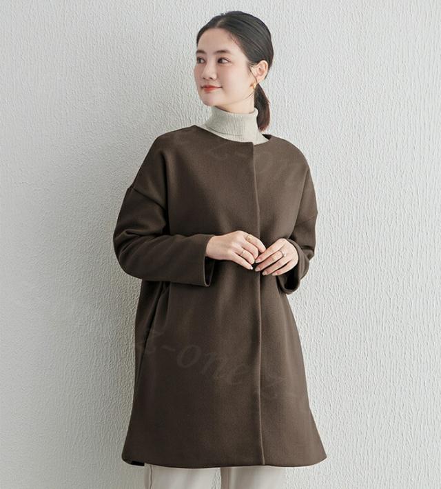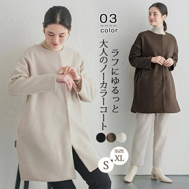 ノーカラーコート ロングコート 新作 コート ジャケット 豊富 ブラック コーヒー オフホワイト S M L XL
