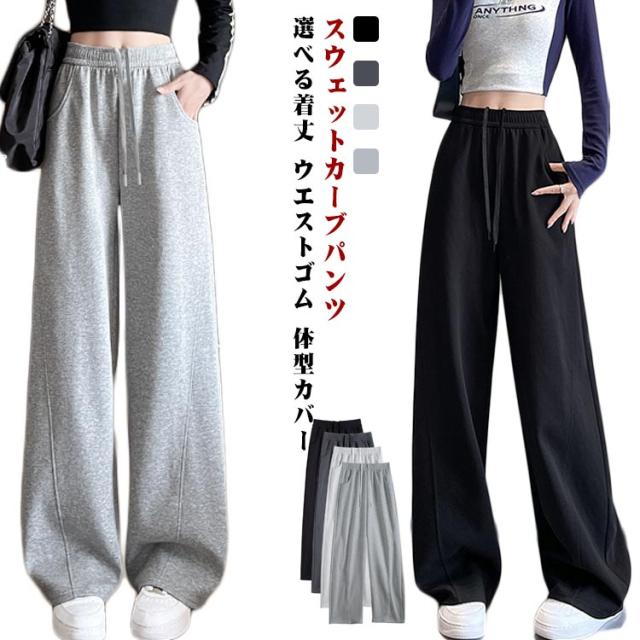 ボトムス ジャージ レディース カーブパンツ スウェット 選べる着丈 ポケットあり パンツ スエット ウエストゴム 長ズボン カジュアル 春 体型カバー