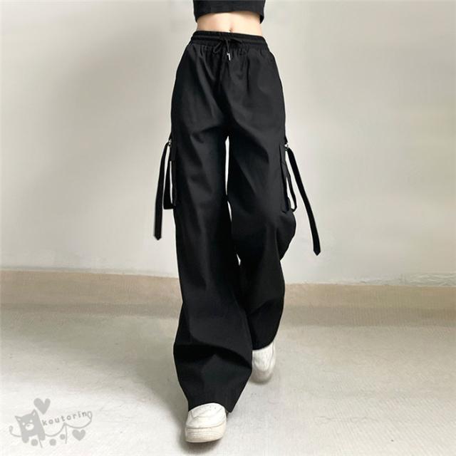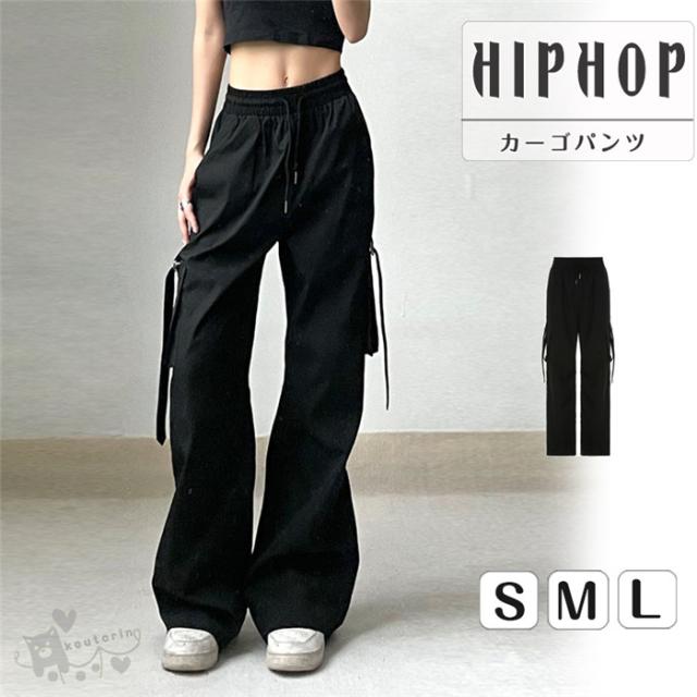 カーゴパンツ ダンス衣装 キッズ レディース ブラック 無地 ストレート HIPHOP ヒップホップ 個性的 服 原宿系 カレッジ風 オシャレ かっこいい ジュニア