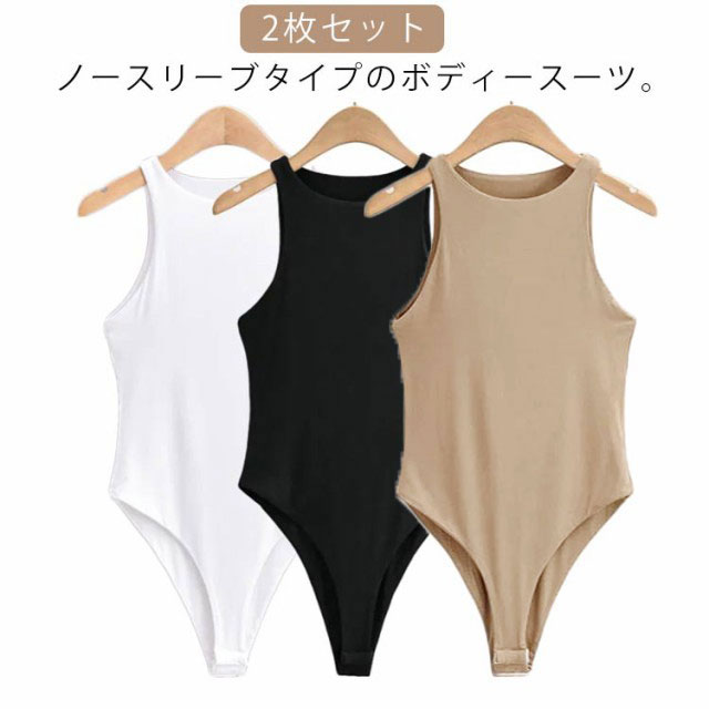 2枚セット ボディースーツ ノースリー トップス Tシャツ カットソー 人気 ブラック+ホワイト ブラック+ベージュ ホワイト+ベージュ ブラック2枚セット ベージュ2枚セット ホワイト2枚セット S M L XL