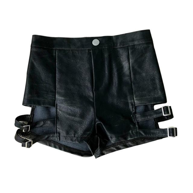 レディース セクシー 20代 30代 40代 ショートパンツ ホットパンツ マイクロミニ フェイクレザー ボトムス ベルト PU革 短パン パンク ストリート系 ダンス衣 ロック
