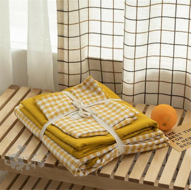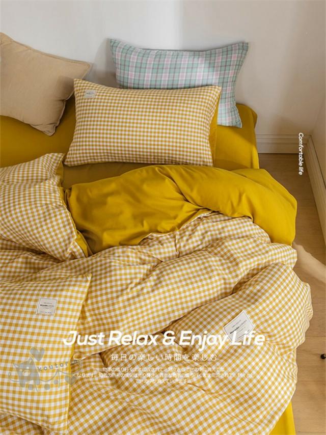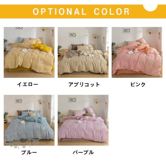 布団カバー セット 4点セットチェック インテリア 寝具 収納 超目玉商品 セミダブル(4点セット) ダブル(4点セット) イエロー アプリコット ピンク ブルー パープル
