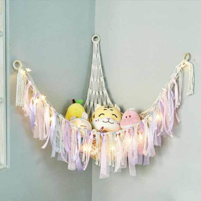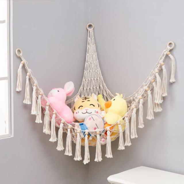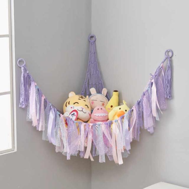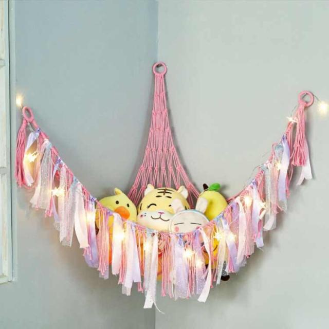 ぬいぐるみ ハンモック 収納ネット おもちゃ収納 綿ロープ 吊り下げ式 子供部屋 室内用 コーナーネット 片付け 隙間収納 見せる収納 お風呂用 インテリア 玩具 小物収納 多用途