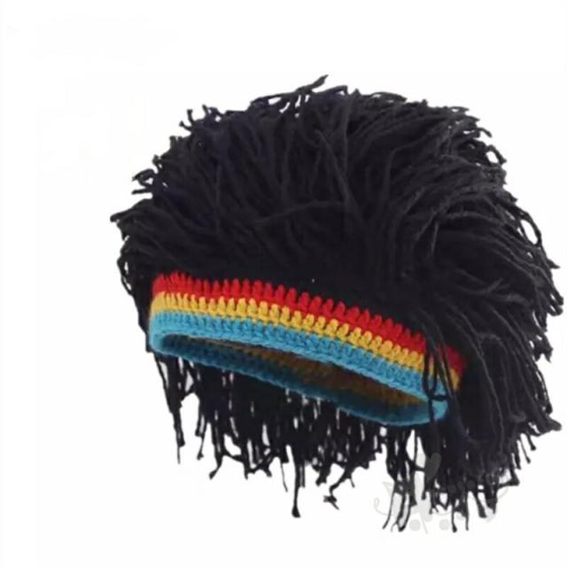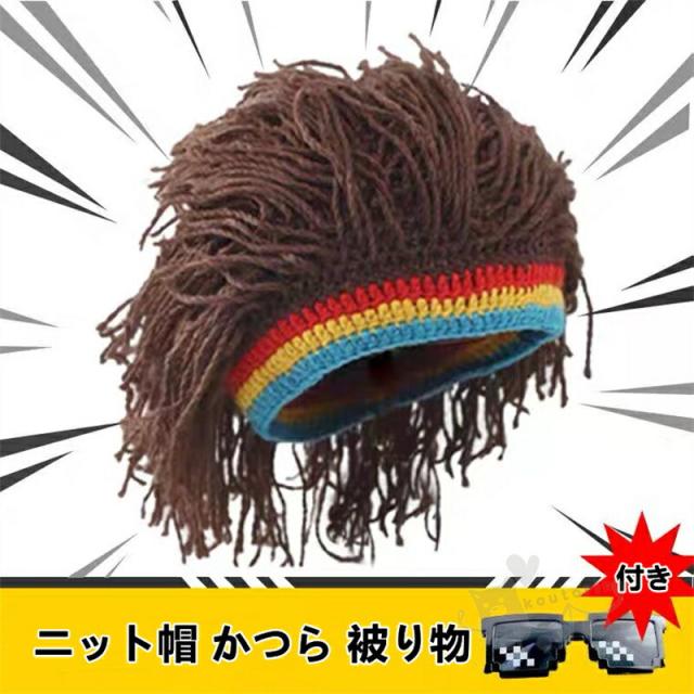 ドレッド 三つ編み 髪の毛 秋冬 防寒 ヘア ウィッグ 付き ニット キャップ ニット帽 かつら 被り物 仮装 レゲエ ダンサー 髪型 ヒップホップ