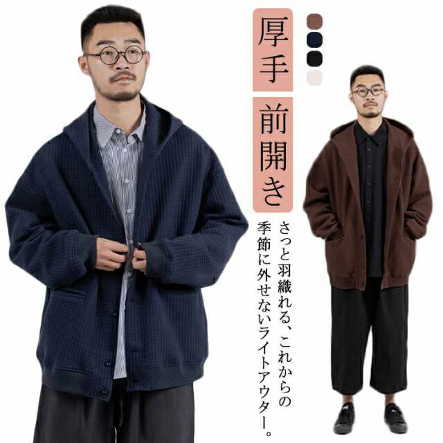 スウェット カーディガン ゆったり メンズ 長袖 秋 フード付き アウター 前開き 厚手 おしゃれ ビッグシルエット 大きいサイズ カジュアル 無地 シンプル 羽織 春 ボタ ジャケット