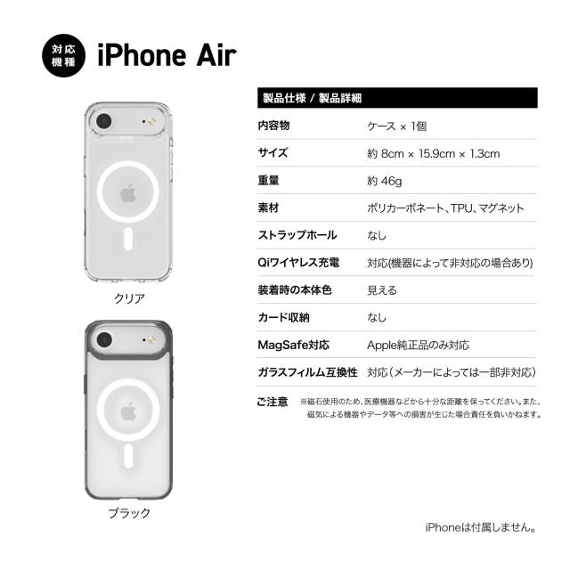iPhone Air ケース MagSafe 対応 耐衝撃 クリア スマホケース カメラ 保護 マグセーフ 透明 頑丈 携帯ケース [ iPhoneAir アイフォンエアー 対応 ] case RAPTIC Air Clear
