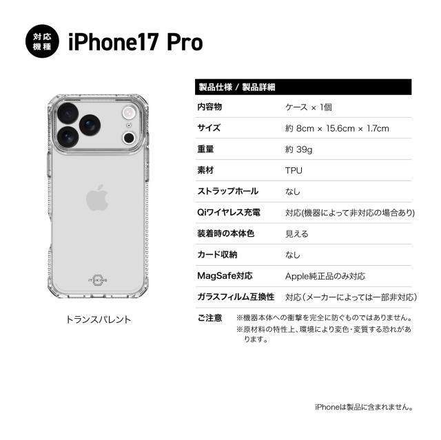 iPhone 17 Pro ケース クリア 薄型 耐衝撃 シンプル スマホケース 抗菌 加工 頑丈 透明 100% リサイクル 素材 使用 携帯ケース [ iPhone17Pro アイフォン17Pro 対応 ] case ITSKINS SPECTRUM R // CLEAR