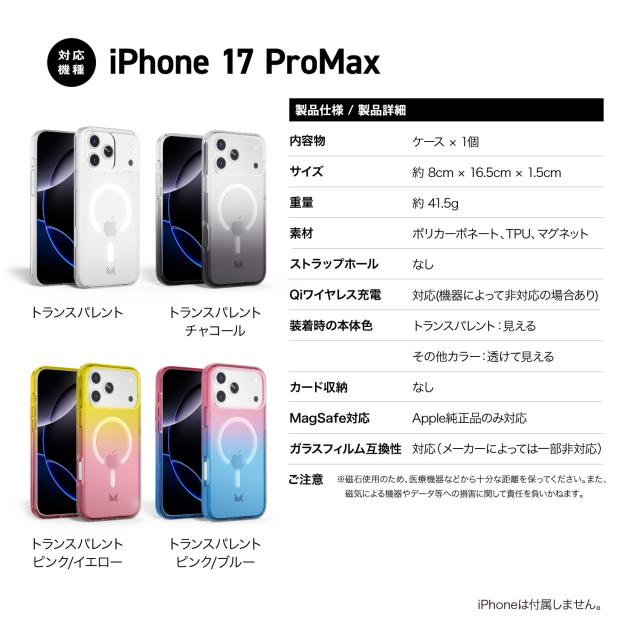 iPhone 17 Pro Max ケース MagSafe 対応 耐衝撃 クリア スマホケース カメラ レンズ 保護 マグセーフ 透明 頑丈 携帯ケース [ iPhone17ProMax アイフォン 17ProMax 対応 ] case MONOCOZZI ESSENTIALS