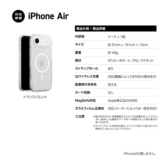 iPhone Air ケース MagSafe 対応 耐衝撃 クリア スマホケース カメラ 保護 マグセーフ 透明 頑丈 携帯ケース [ iPhoneAir アイフォンエアー 対応 ] case MagEasy Cleon M