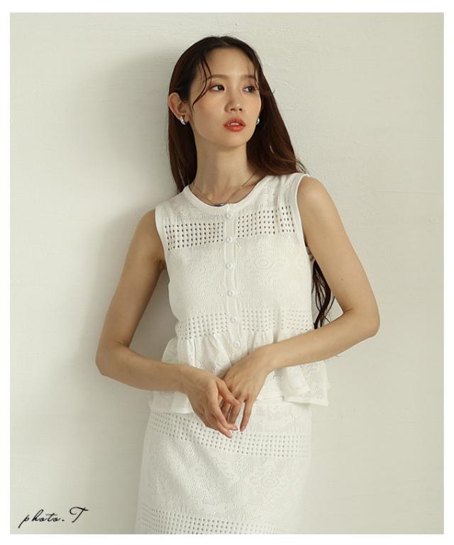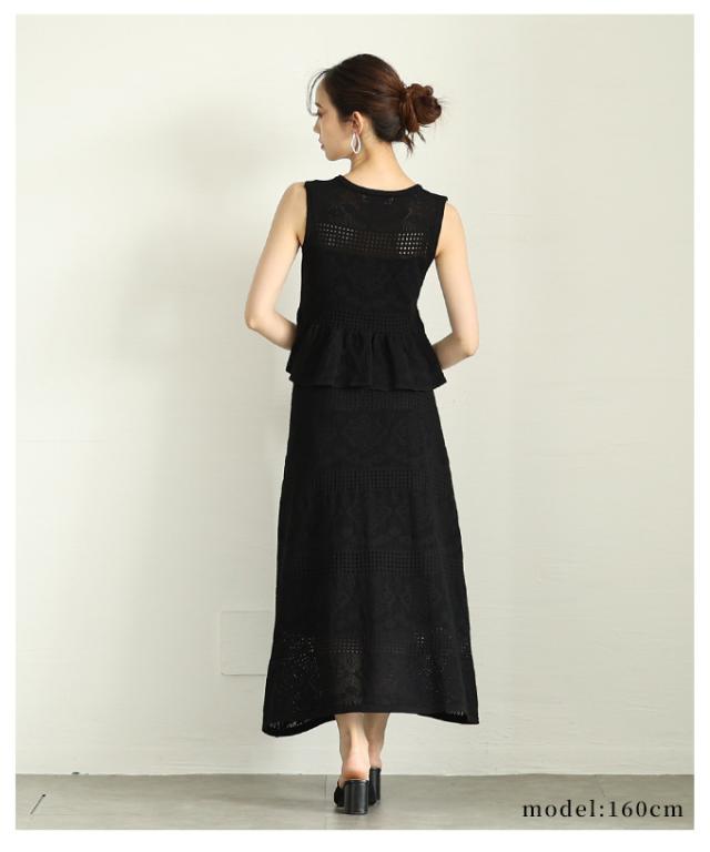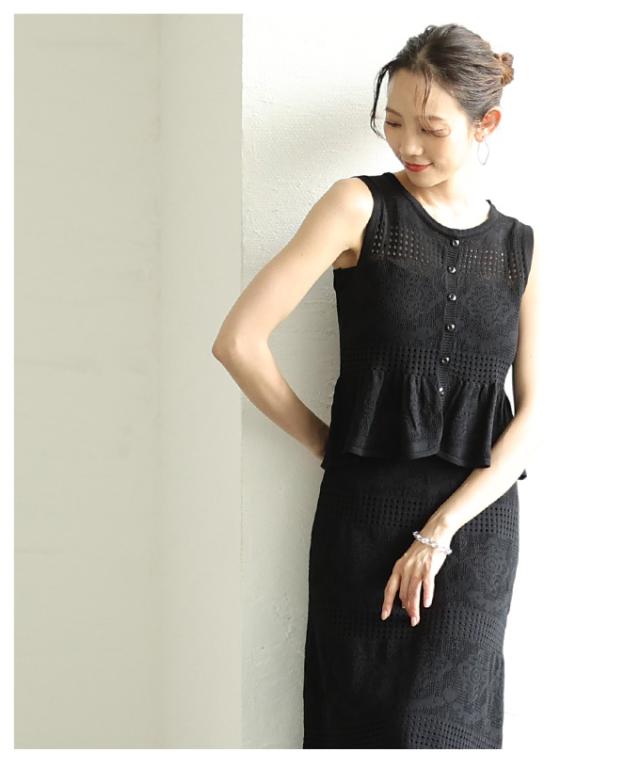 特徴: サマーニット セット 2点 フレア ウエストゴム ペプラム