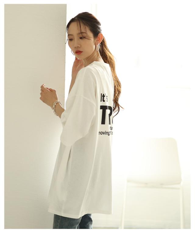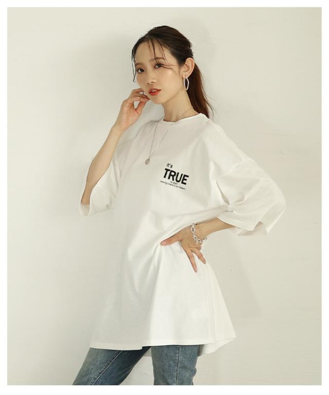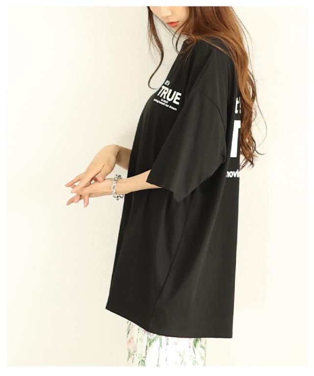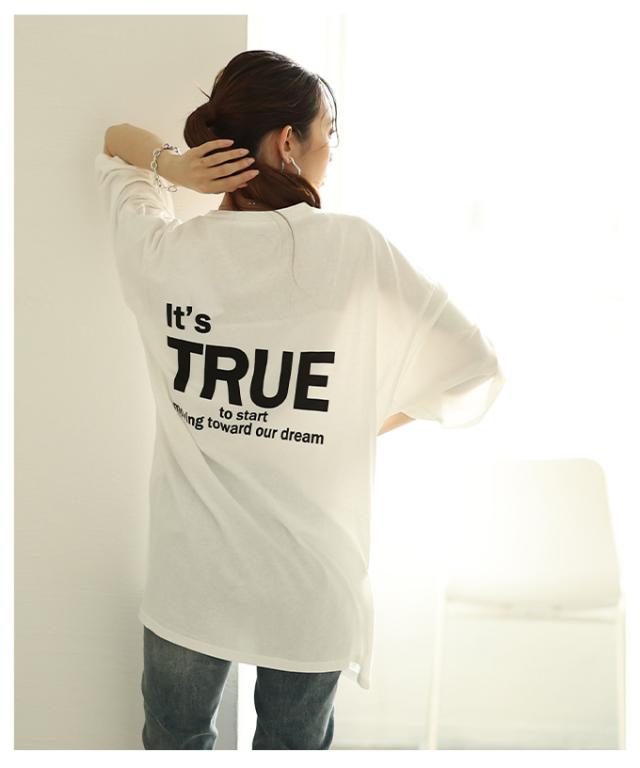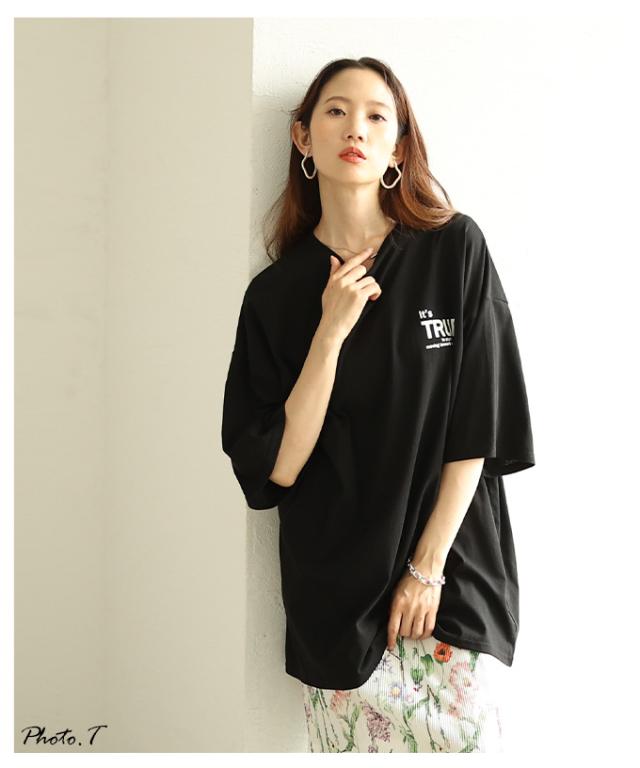 春新作 後ろ姿も抜かりない大人のロゴプリントオーバーTシャツ レディース ファッション トップス Tシャツ カットソー ロゴ オーバーサイズ ビッグ 夏 夏服 30代 40代 50代 60代 サワアラモード sawaalamode otona 大人 cawaii 可愛い 洋服 かわいい服 almam-29516