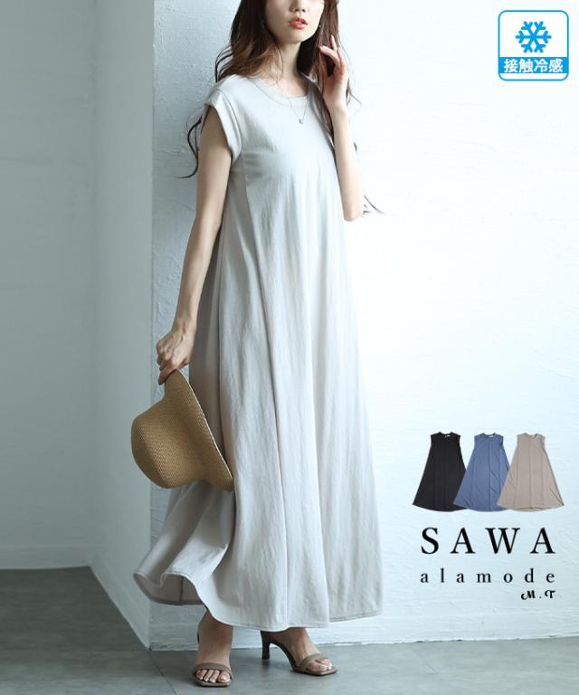 春新作 ワードロープに欠かせない接触冷感フレンチスリーブフレアワンピース レディース ファッション ワンピース 接触冷感 フレンチスリーブ 半袖 ロング 夏 30代 40代 50代 60代 サワアラモード sawaalamode otona 大人 cawaii 可愛い 洋服 かわいい服 almam-51887