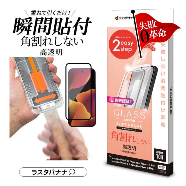 Google Pixel 10 Pixel 10Pro Pixel 9 Pixel 9Pro ガラスフィルム 全面保護 高光沢 高透明 クリア 貼付革命 貼り付け革命 瞬間張り 失敗しない レボリューション 角割れしない 指紋認証対応 0.25mm 硬度10H グーグル ピクセル 保護フィルム MTK5064P10 ラスタバナナ