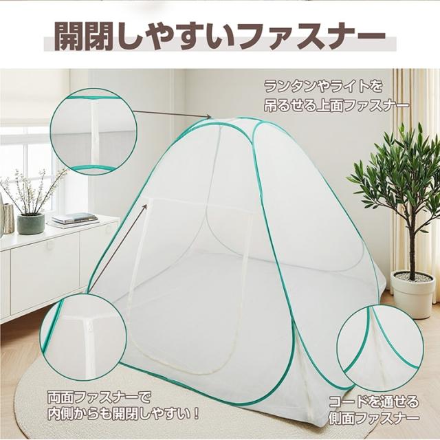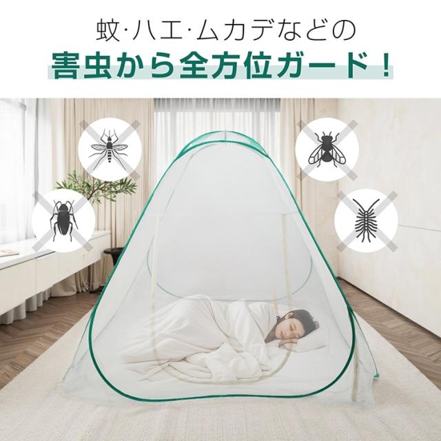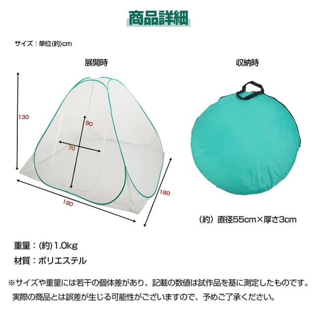 蚊帳 かや 蚊帳んぽ ワンタッチ 約190×180cm 折りたたみ式 組立簡単 収納便利 専用ケース付き 虫よけ 蚊よけ ムカデ対策 ビッグサイズ 夏 寝室 キッズ zk091