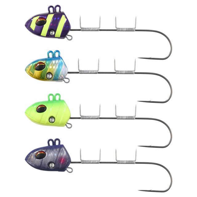 ●アイの高さを抑えることで、抵抗が軽減されフォールスピードが向上しました(スモールアイ仕様)。さらに、ヘッドのゼブラ部分や腹部分にシールを貼ることで、好みのカラーにカスタマイズすることが可能です(シールは別売り)。また、AHシリーズの針とも交換できるHC(HookChange)針交換機能を搭載しています。